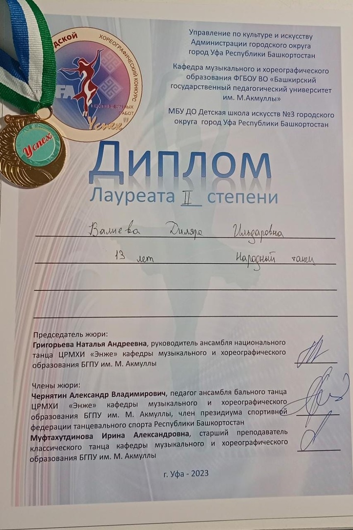 20 марта пять участниц Ансамбля Национального Танца "ЭНЖЕ" приняли участие в необыкновенном конкурсе: V городской хореографический конкурс постановочных работ в сольном и дуэтном исполнении "УСПЕХ". Организатором конкурса является МБУ ДО Детская школа искусств №3 городского округа город Уфа Республика Башкортостан. Соорганизаторы конкурса: Управление по культуре и искусству Администрации городского округа город Уфа РБ; Кафедра музыкального и хореографического образования БГПУ им.М.Акмуллы. Возрастная категория участников от 7 до 25 лет. На конкурс участники представляют постановочные работы, выполненные самими участниками конкурса, в собственном исполнении. Основной целью конкурса является - самореализация и самовыражение посредством танцевального искусства.