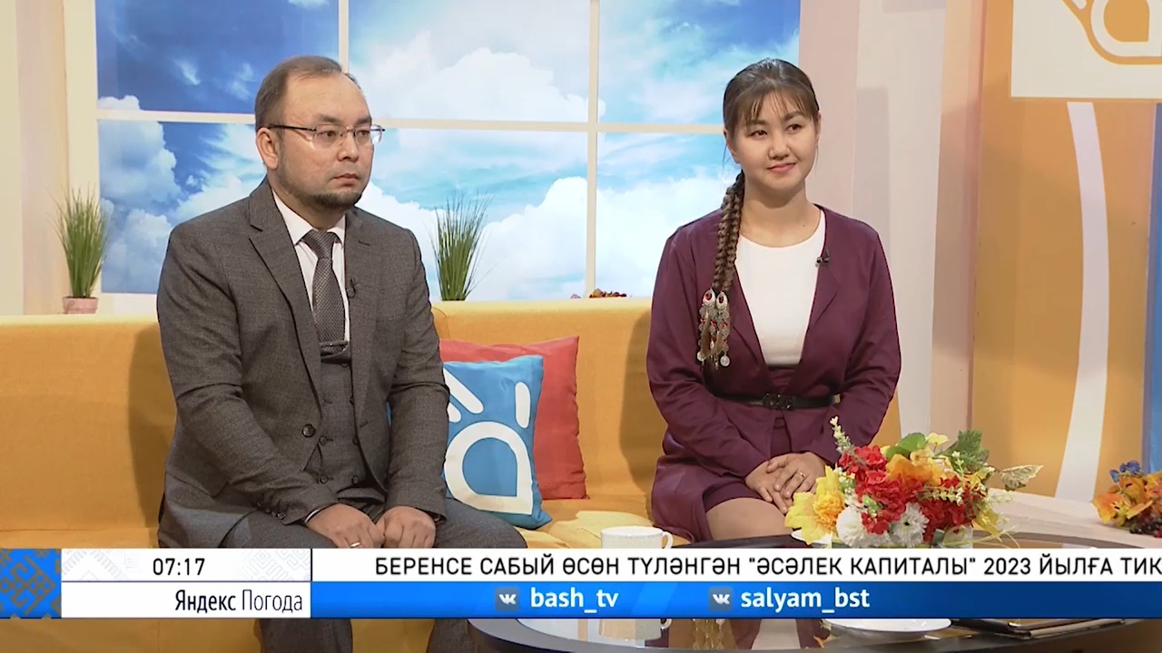 Руководитель проекта "Просветительская школа "Наш Акмулла"" Айтуган Куланчин и исполнитель проекта Альфия Гайсина приняли участие в программе "Салям" на канале БСТ. Айтуган Юмабаевич рассказал о целях и задачах проекта, а также о работе кутубханы (литературной кофейне), которая станет площадкой для молодежи для проведения разных просветительских мероприятий. Альфия рассказала о конкурсе творческих работ "Тулкын", который проводится среди учеников школ и студентов ссузов и вузов. Напоминаем, что проект «Просветительская школа «Наш Акмулла» БГПУ им М. Акмуллы стал победителем в номинации «Помни» Всероссийского конкурса молодежных проектов среди образовательных организаций высшего образования в 2022 году Федерального агентства по делам молодежи (Росмолодежь).