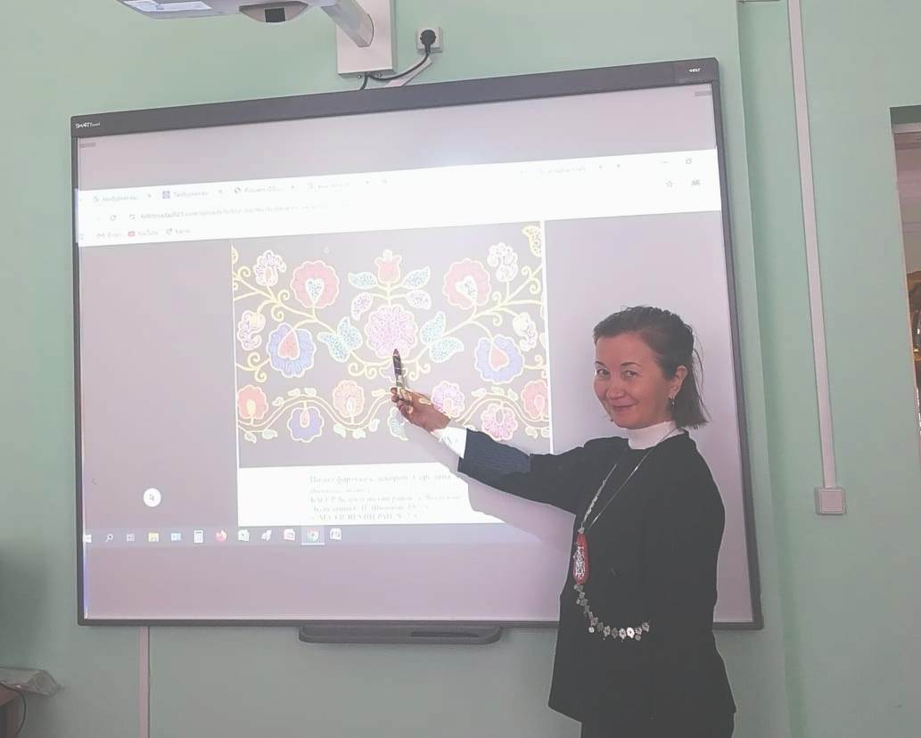 В рамках мастер-класса Г.Р. Шагапова рассказала об истории тамбурной вышивки и её значении в культуре башкирского народа. Студенты узнали, что она украшала не только одежду, но и предметы быта, неся сакральную символику, отражая религиозные и природные мотивы, особенно цветочно-растительные орнаменты и традиционные символы. Уникальные техники и композиции, характерные именно для башкирской вышивки, передавались из поколения в поколение, сохраняя связь с предками и историей.