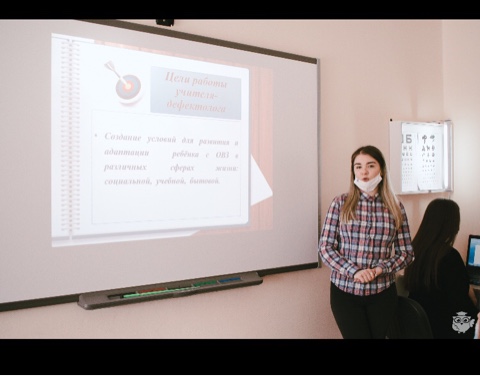 Учащимся также были продемонстрированы видеоролики выпускников кафедры специальной педагогики и психологии, которые поделились впечатлениями о системе обучения по данным программам и первом опыте своей профессиональной деятельности.