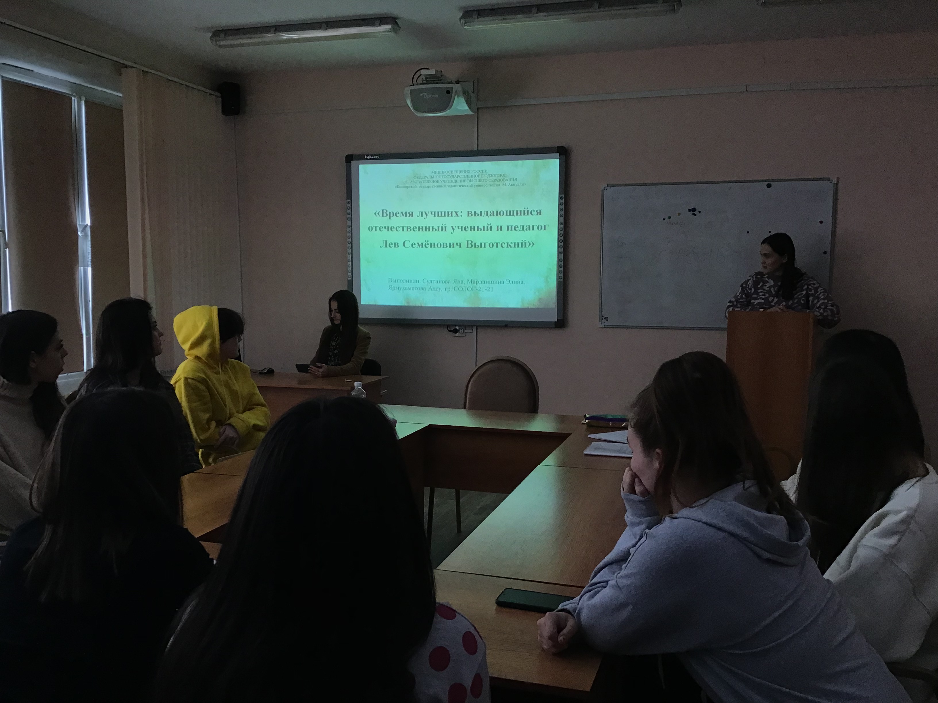 13 февраля 2023 года студенты группы СОЛОГ-21-21 (куратор Сайфутдиярова Е.Ф.) подготовили выступление на кураторском часе по теме «Время лучших: выдающийся отечественный ученый и педагог Л.С. Выготский». Студенты Мардамшина Э. и Ярмухаметова А. рассказали группе о жизни и научной деятельности выдающегося отечественного психолога, дефектолога и педагога Л.С. Выготском. Студенты познакомились с основными трудами ученого, ведущими положениями его теории.