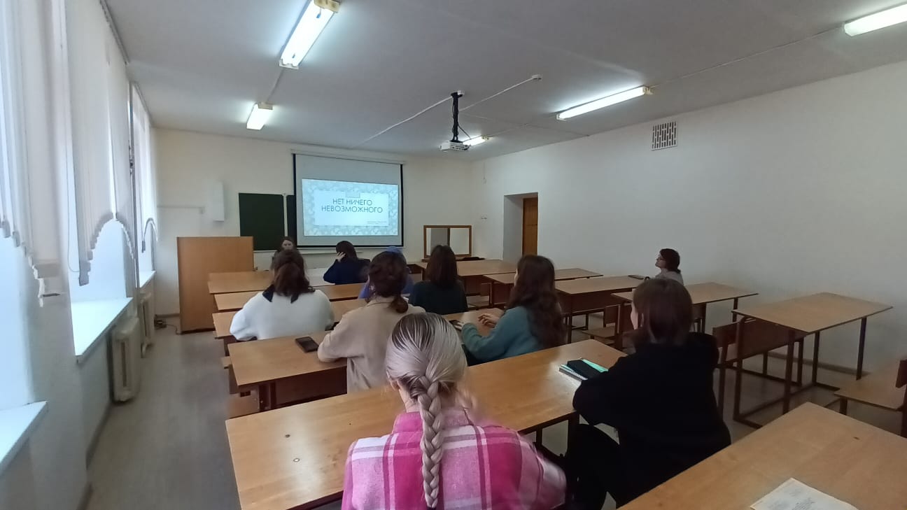 28 февраля в группе СОДД-21-21 (куратор Фатихова Л.Ф.)  прошел кураторский час на тему «Нет ничего невозможного».