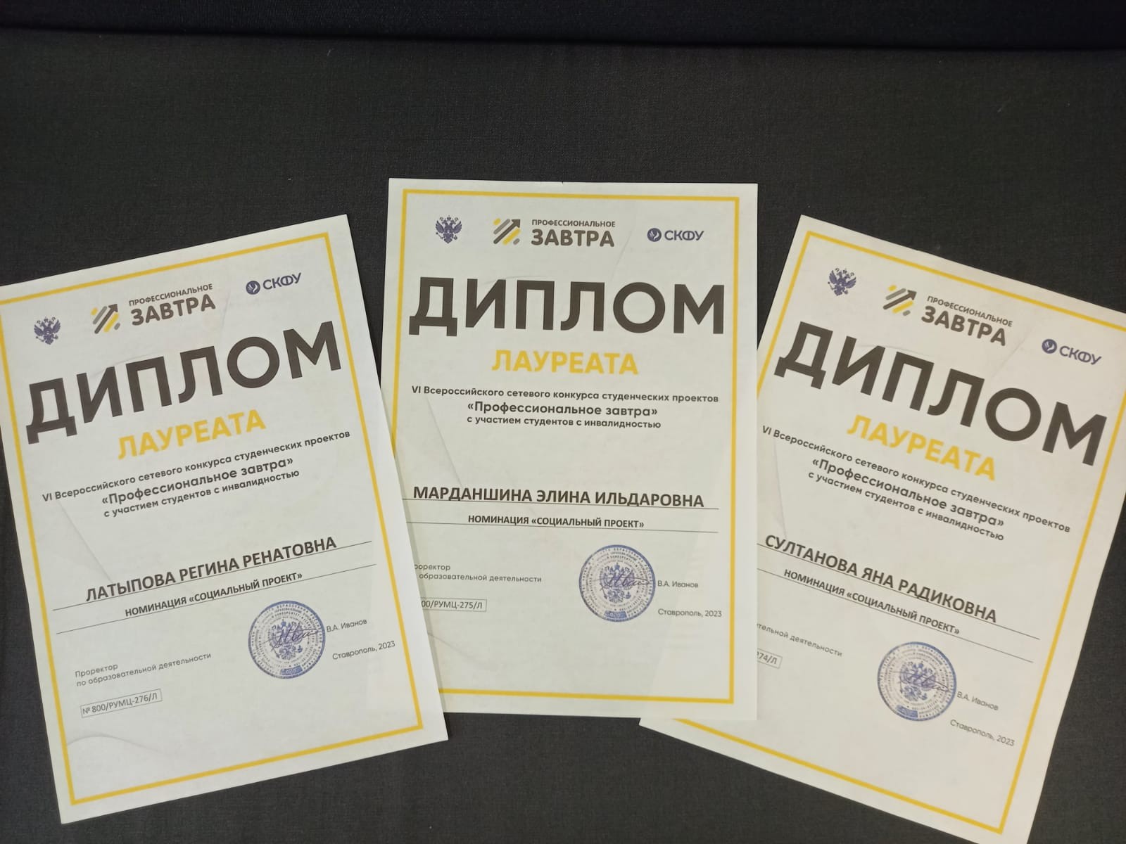 13 октября 2023 г. завершился очный этап VI Всероссийского сетевого конкурса студенческих проектов «Профессиональное завтра» с участием студентов с инвалидностью. Данный конкурс начался 17 апреля 2023 года, в нем приняли участие 829 участников, из них 359 человек вышли в очный этап. В финал очного этапа в номинации «Социальный проект» прошли студенты 3 и 4 курса направления «Специальное (дефектологическое) образование» профили «Логопедия» и «Дошкольная дефектология» Марданшина Элина, Латыпова Регина и Султанова Яна. Команда БГПУ им. М.Акмуллы под руководством старшего преподавателя кафедры СПиП Зигануровой Р.В. представила проект «Творческая лаборатория «Мир ярких красок» и по результатам конкурсным испытаний студенты стали лауреатами конкурса.