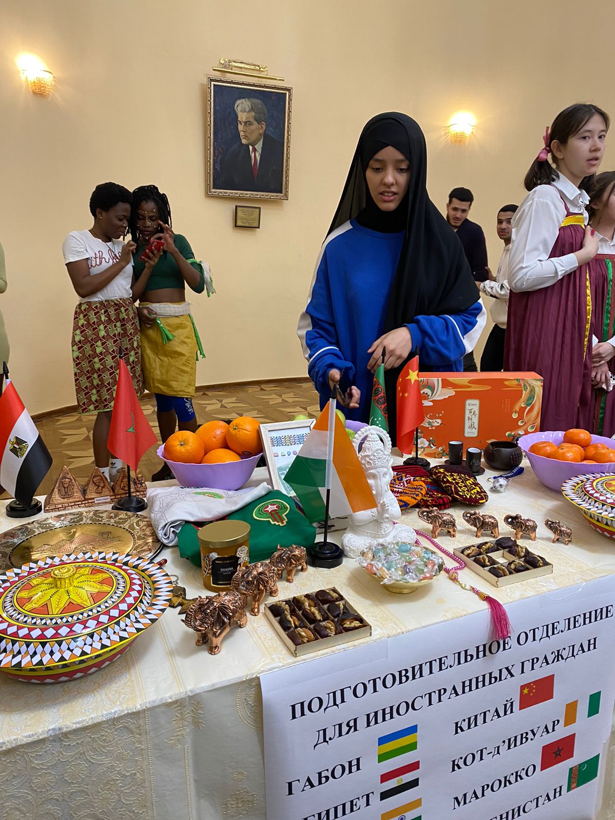 В фойе филармонии студенты Акмуллинского университета представили традиции и культуру башкирского, русского, татарского, казахского, узбекского, таджикского, киргизского, туркменского, китайского народов. Каждая национальность была представлена на своей площадке. Студенты продемонстрировали свои таланты – пели, плясали, декламировали стихи. Можно было попробовать блюда национальной кухни, которые щедро предлагались на каждой площадке.