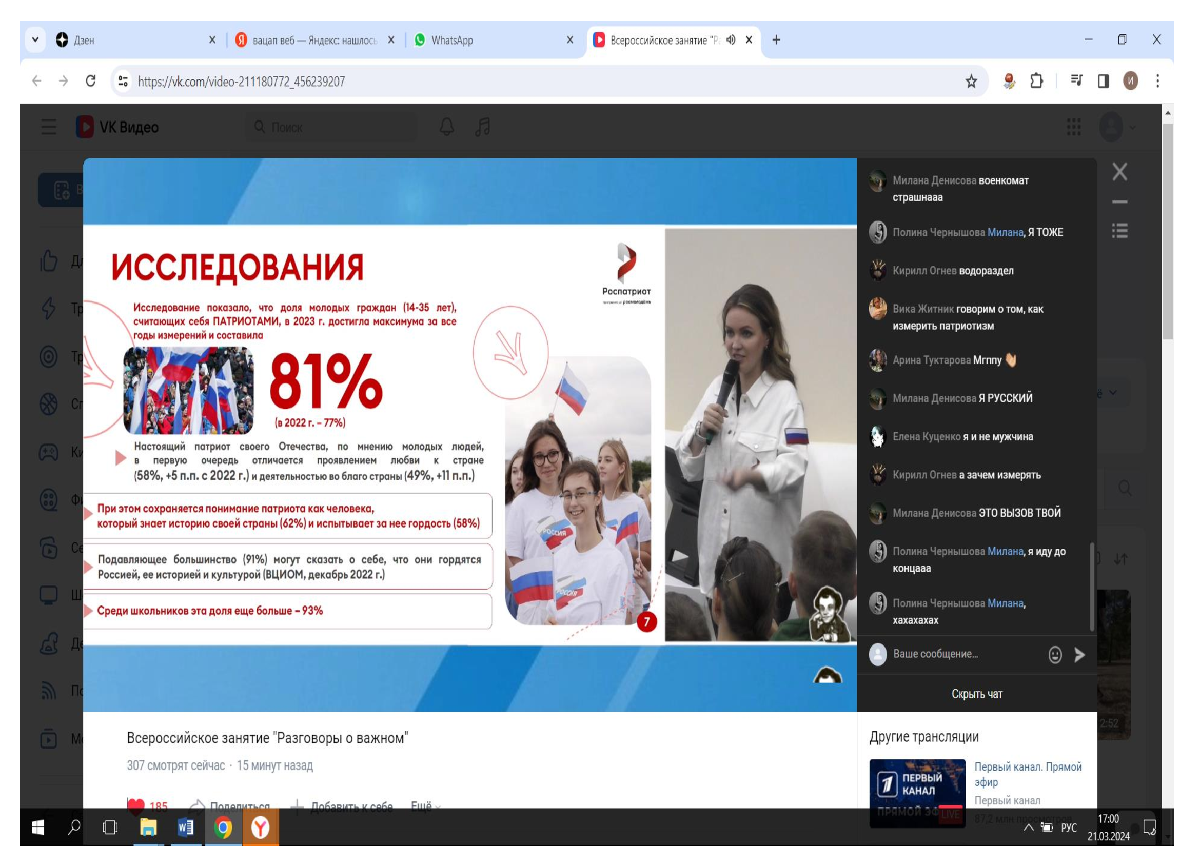 Студенты, магистранты и преподаватели кафедры специальной педагогики и психологии приняли участие в работе Всероссийского занятия «Разговоры о важном» на тему «Патриотизм сегодня»
