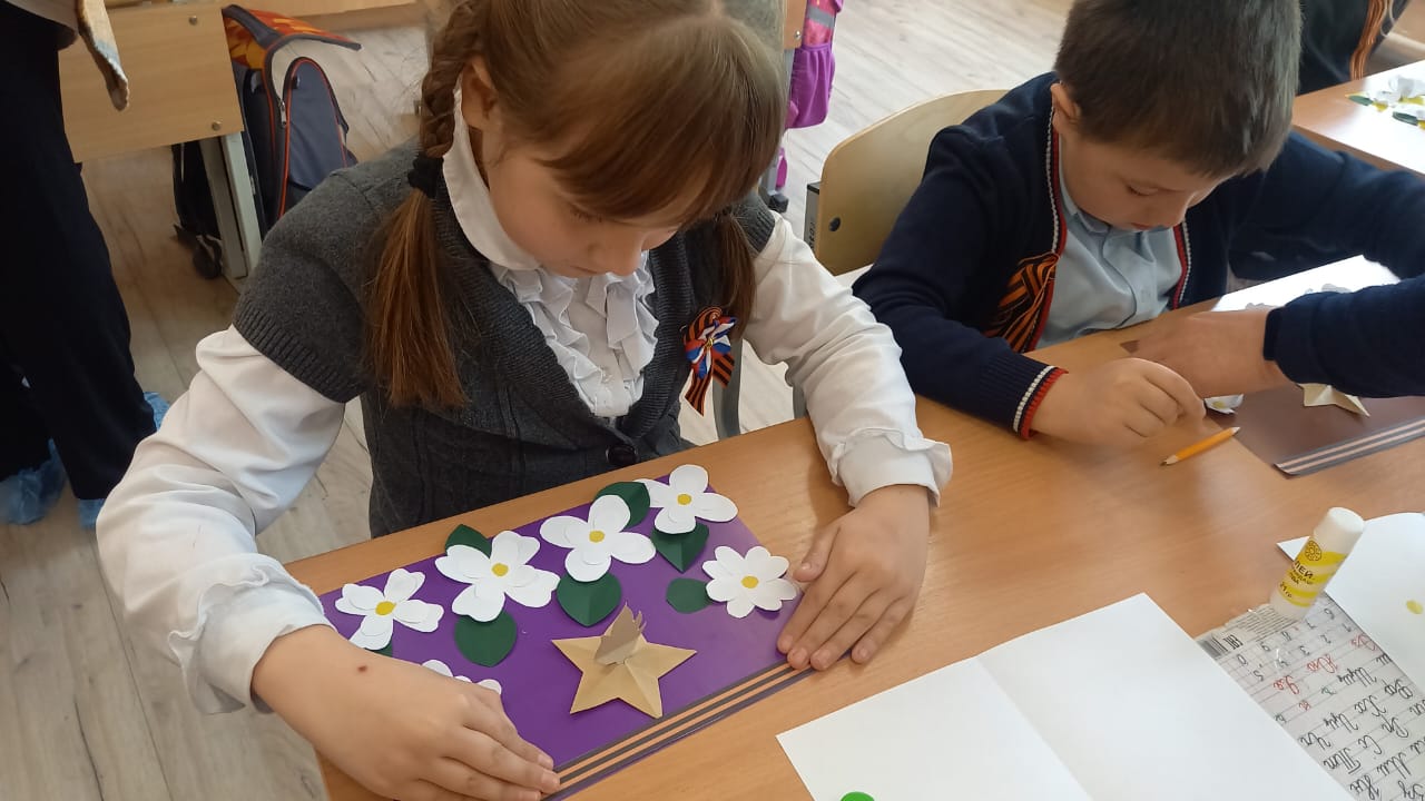 Кутьина Дарья, студентка группы СОДД-11-23: «Для ребенка с ограниченными возможностями здоровья важно иметь осязаемый, видимый результат своего труда. Именно поэтому для учеников 1 – 5-ых классов мы подобрали задания, связанные с рисованием, аппликацией, изготовлением предметов военной тематики. Нам было очень важно передать историческую правду о Великой Победе, чтобы никто и никогда не забыл о том, какую цену заплатил советский народ за наше мирное сегодня».