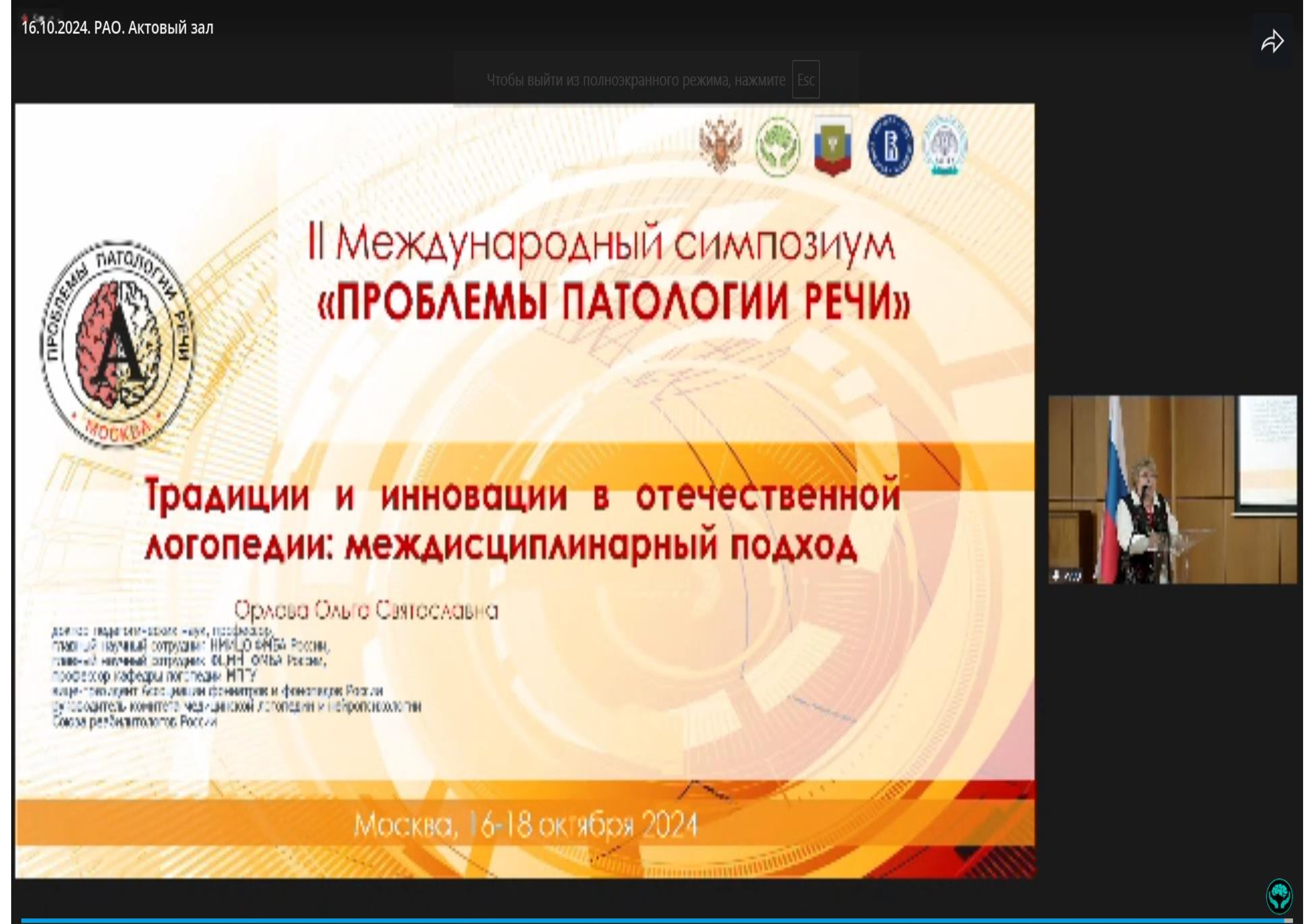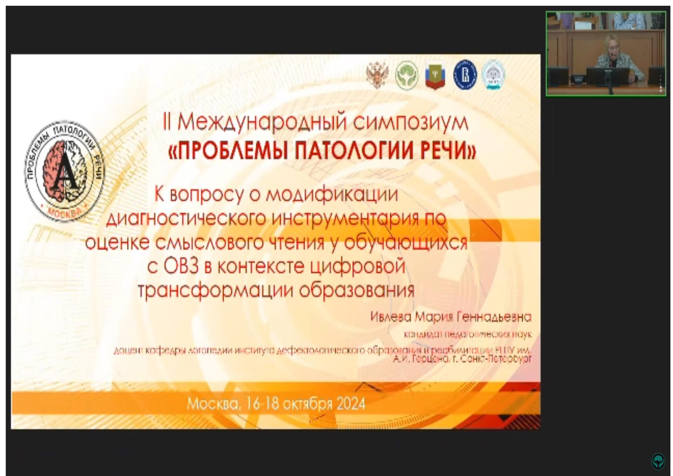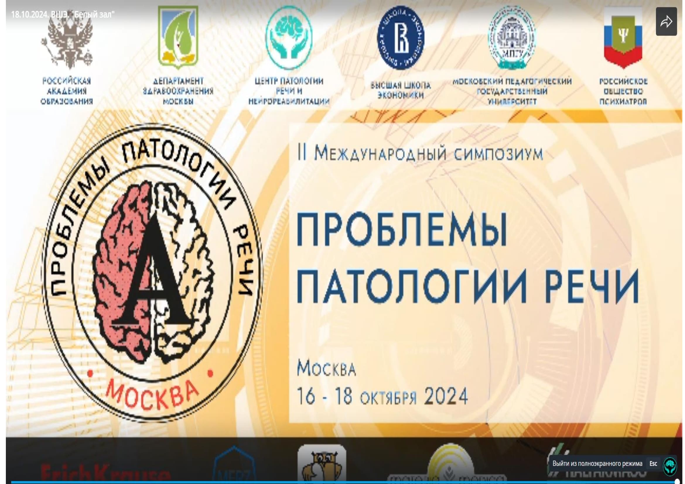 16–18 октября 2024 г. состоялся II Международный симпозиум «Проблемы патологии речи». Мероприятие было организовано Российской академией образования и Центром патологии речи и нейрореабилитации Департамента здравоохранения города Москвы совместно с Учебно-научным центром междисциплинарных исследований в специальном и инклюзивном образовании Института детства Московского педагогического государственного университета и Центром языка и мозга Национального исследовательского университета «Высшая школа экономики». Симпозиум был приурочен к 35-летию Первого Всесоюзного симпозиума «Проблемы патологии речи», организованного академиком Российской академии образования, доктором психологических наук, профессором Виктором Марковичем Шкловским.