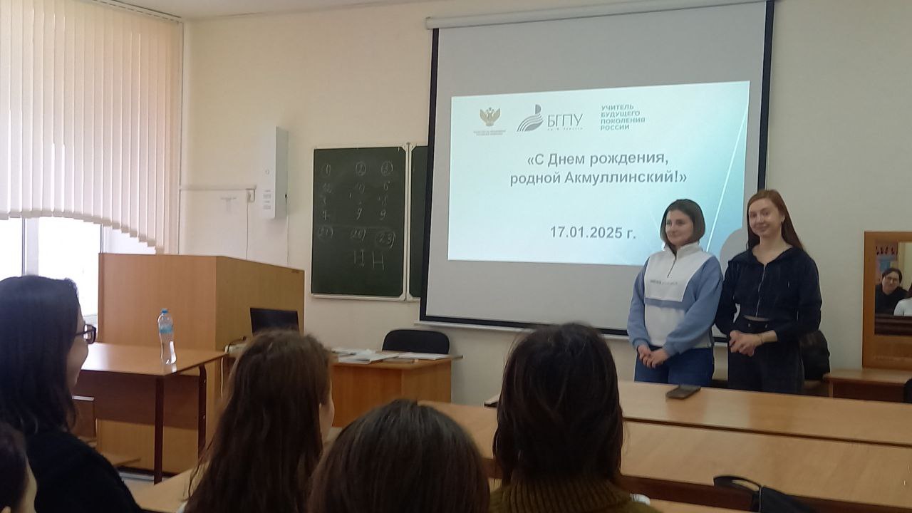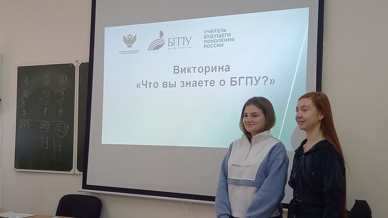В преддверии 58-летия со дня основания Акмуллинского университета студенты 2 курса кафедры специальной педагогики и психологии Кутьина Дарья и Титова Арина организовали и провели со студентами 1 курса (куратор Дильмухаметова Р.С.) викторину, посвященную истории родного вуза.