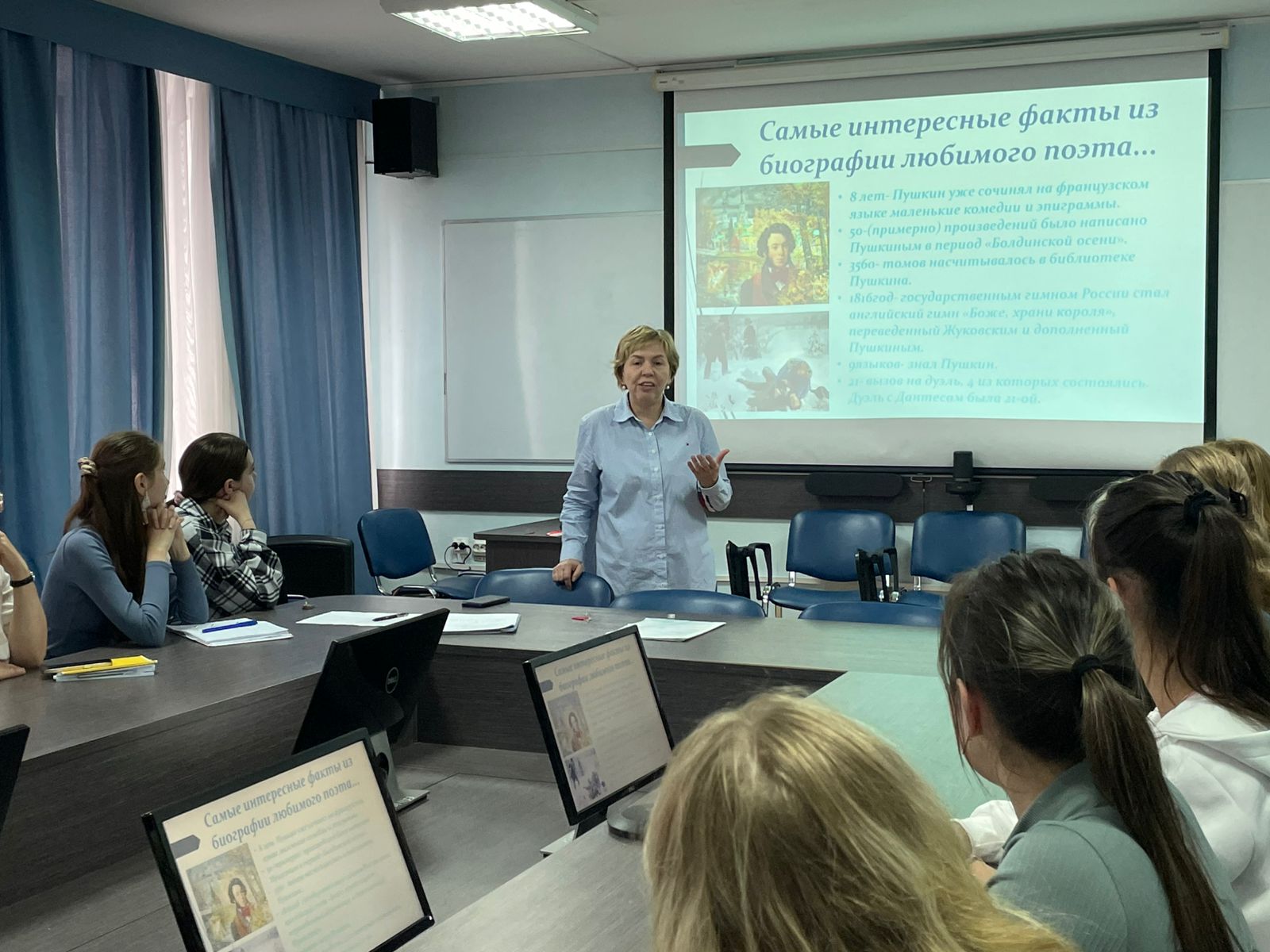 Творчество Александра Сергеевича сопровождает нас на протяжении практически всей жизни: сказки, стихотворения, поэмы, повести, романы, драматические произведения, оды, элегии, эпиграммы, сонеты, послания, мадригалы. Он сумел объединить разговорную речь, книжную лексику, народные формы и создать новый литературный язык, доступный каждому. Благодаря Пушкину русский язык стал живым, гибким и многогранным. И сегодня Пушкин остаётся живым в своих произведениях, в языке, в культуре, которую мы сохраняем и развиваем.