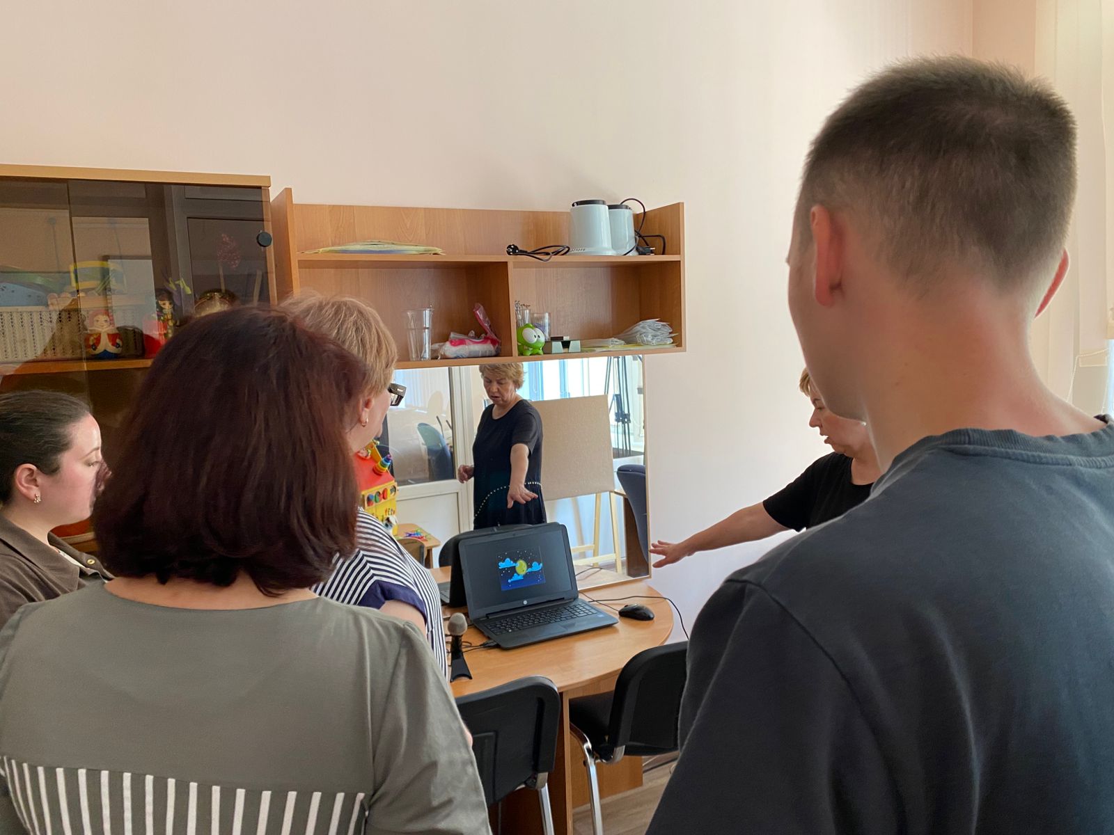 7 июня для педагогов общеобразовательных организаций г. Торез Донецкой Народной Республики, посетивших Институт педагогики, зав. кафедрой специальной педагогики и психологии Цилюгина И.Б. провела мастер-класс. Ирина Борисовна познакомили коллег с направлениями и профилями подготовки, реализуемыми на кафедре, особенностями организации учебного процесса, презентовали Центр развития компетенций «Мастерская специальных технологий инклюзивного образования», учебно-методические пособия преподавателей кафедры, поделились опытом подготовки специалистов в области специального (дефектологического) образования. В интерактивной форме участники мастер-класса обсудили использование диагностических методов в профессиональной деятельности педагога инклюзивного образования.