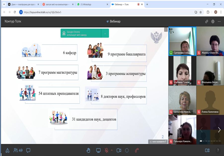 10 июня 2025 года кафедра специальной педагогики и психологии приняла участие в профориентационном вебинаре Института педагогики, организованном для выпускников колледжей и их родителей. В вебинаре приняли участие выпускники Кушнаренковского многопрофильного профессионального колледжа им. Д.Мурзина, Месягутовского педагогического колледжа, Туймазинского педагогического колледжа, Нефтекамского педагогического колледжа, Уфимского многопрофильного профессионального колледжа.