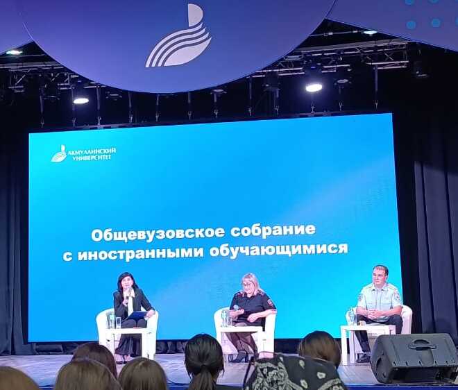 Продолжением праздничной части стало традиционное общевузовское собрание для иностранных студентов, посвященное основным правилам нахождения иностранных граждан на территории Российской Федерации, обучения в университете и проживания в общежитии. Модератором встречи выступила начальник управления международных связей Резеда Рафитовна Мухитдинова.