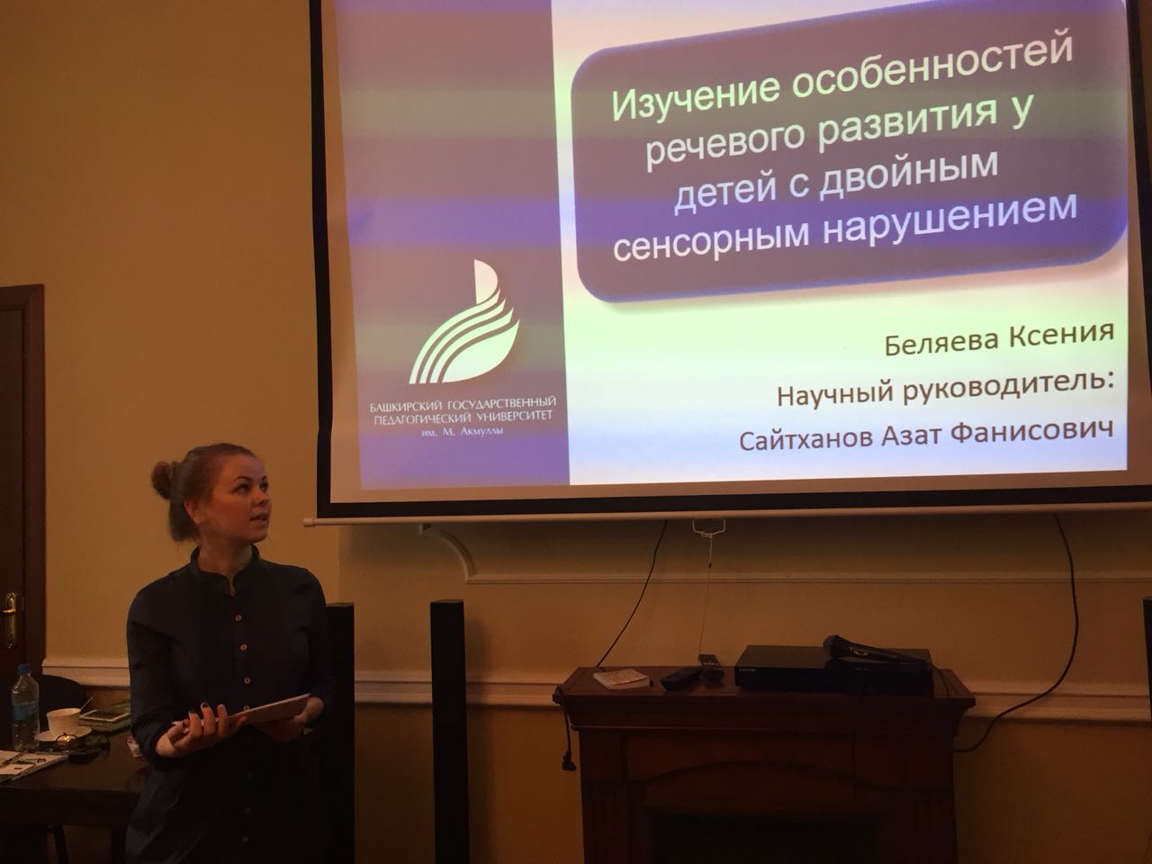 1-2 апреля 2018 года в Москве стартовала третья сессия проекта " Наставники и ученики" программы "Наука и образование" Фонда поддержки слепоглухих "Со-единение". В проекте представлены исследования бакалавров 4 курса кафедры специальной педагогики и психологии Института педагогики ФГБОУ ВО БГПУ им. М.Акмуллы: Шайхайдаровой Р. (группа СОЛОГ) на тему: "Альтернативные средства общения слепоглухих", научный руководитель Касимова Э. Г., к. пед. н., доцент; Беляевой К. (группа СОДД) на тему: "Изучение особенностей речевого развития у детей с двойным сенсорным нарушением", научный руководитель Сайтханов А. Ф., к. пед. н., доцент.