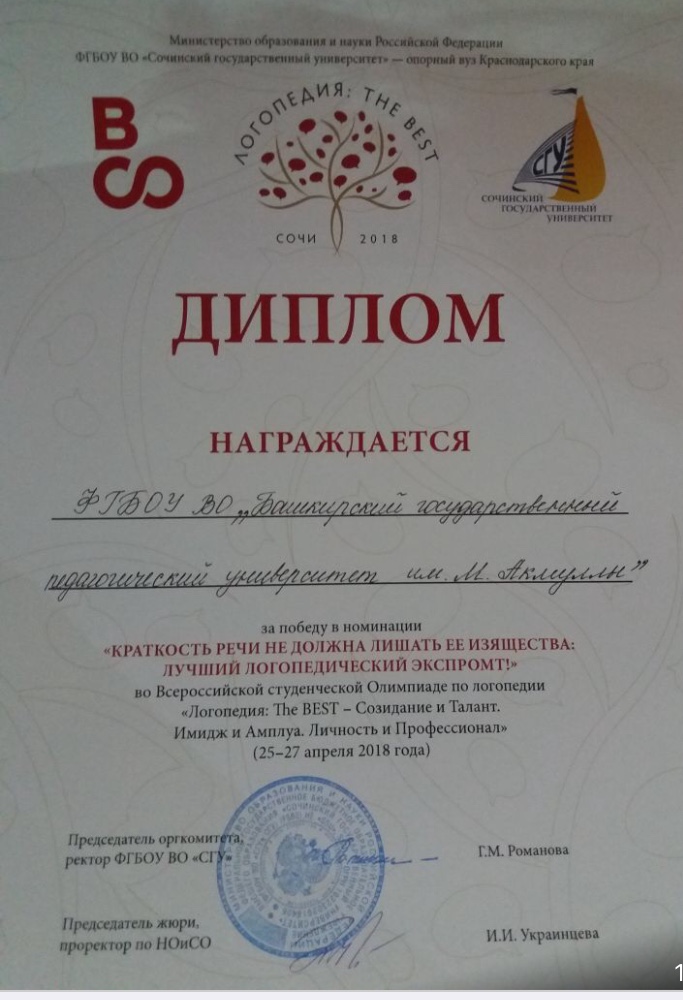 Студенты БГПУ им. М. Акмуллы приняли участие во Всероссийской студенческой олимпиаде по логопедии «Логопедия: The BEST – Созидание и талант. Имидж и амплуа. Личность и профессионал»