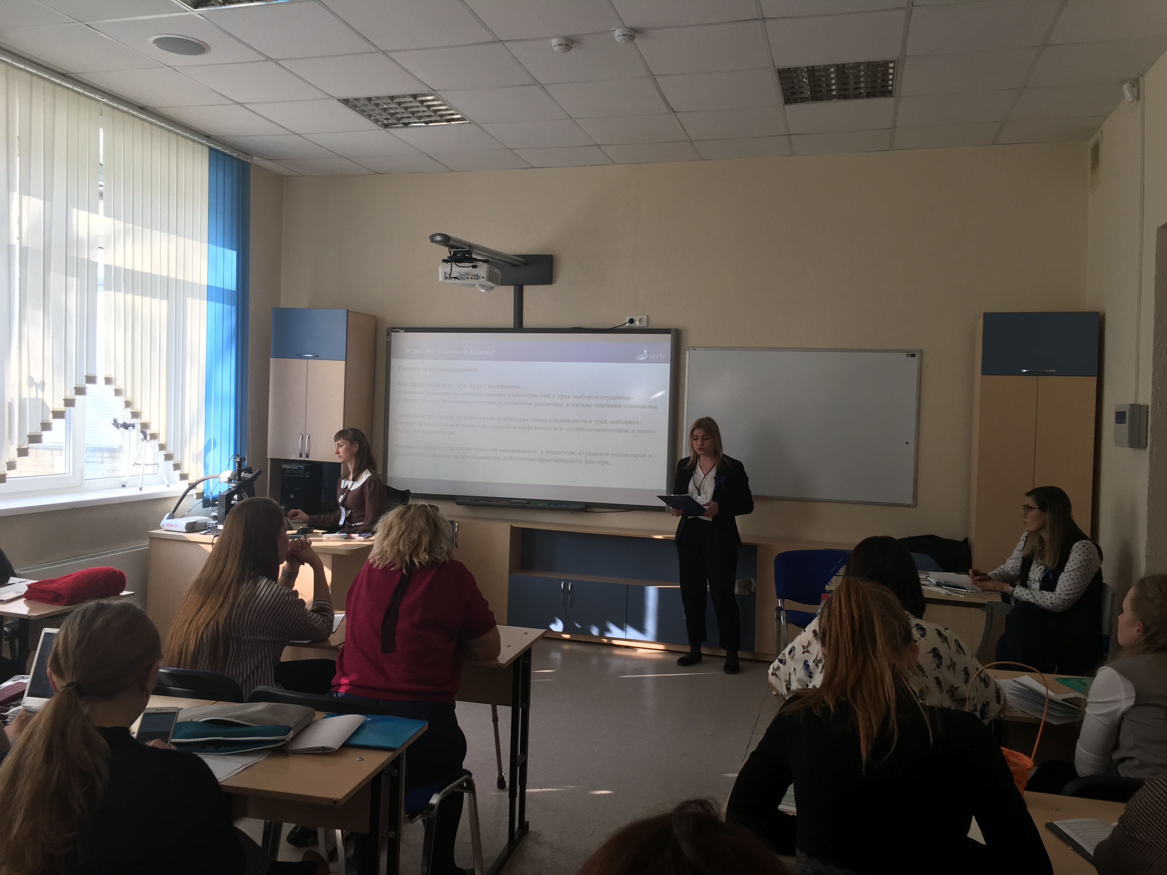 Наши студенты выступили с докладами, так Галстян Каринэ представила результаты эмпирического изучения взаимодействия будущих дефектологов с семьями, воспитывающими детей с ТМНР; Николаева Виктория продемонстрировала дидактические пособия для работы со слепоглухими детьми; Мазова Екатерина представила модель взаимодействия специалистов с родителями слепоглухих детей. Исследования Галстян Каринэ и Мазовой Екатерины осуществлялись в течение учебного года на базе лаборатории "Диагностика и коррекция нарушений развития лиц с ОВЗ" на материале реализованного проекта "Мамина школа" на базе СООЦ "Салихово" в августе 2018 г.