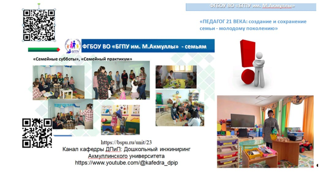 Кафедрой ДПиП Института педагогики разработан и представлен проект «Инновационная подготовка специалистов на базе технопарка, мастерской профессионального мастерства и центра развития компетенций «Акмуллинская академия развития детей и семейного образования СОТы» в поликультурной и полилингвальной среде»: в соответствии с образовательными треками - подготовка и повышение квалификации современного педагога; профессиональное развитие и наставничество начинающих педагогов.