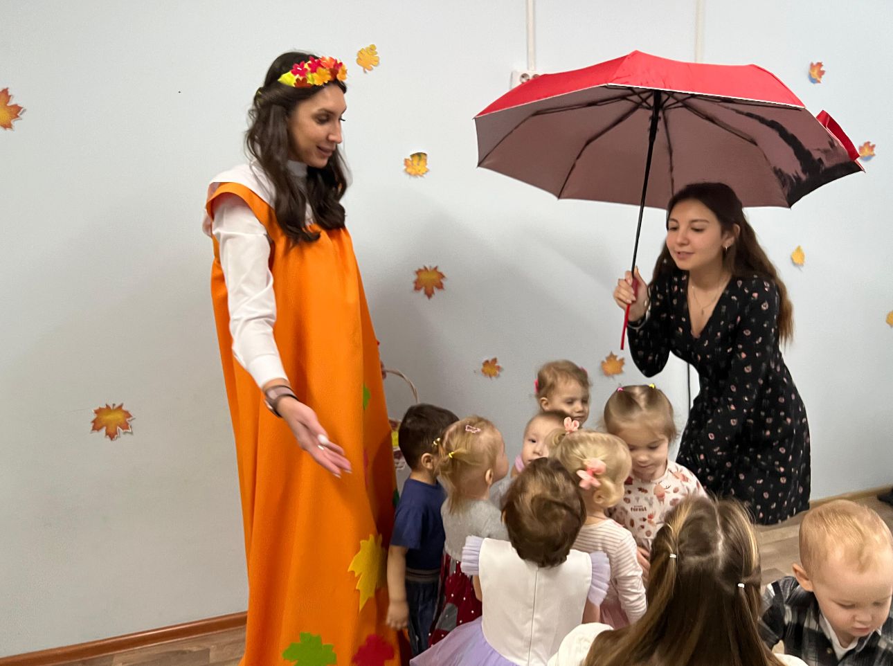 В гости к ним пришла Осень со своими осенними подарками и интересными играми: яркая и веселая она водила с ребятами хороводы, играла, загадывала загадки, пела песни и танцевала.