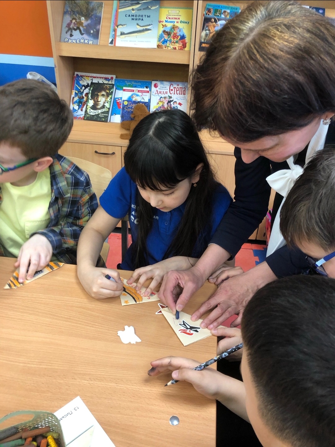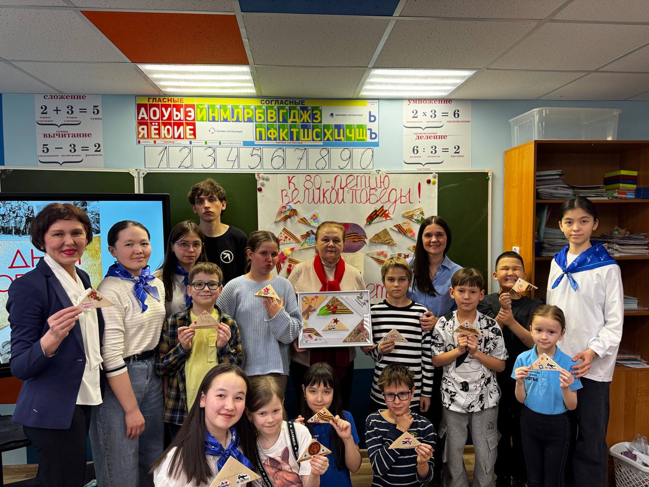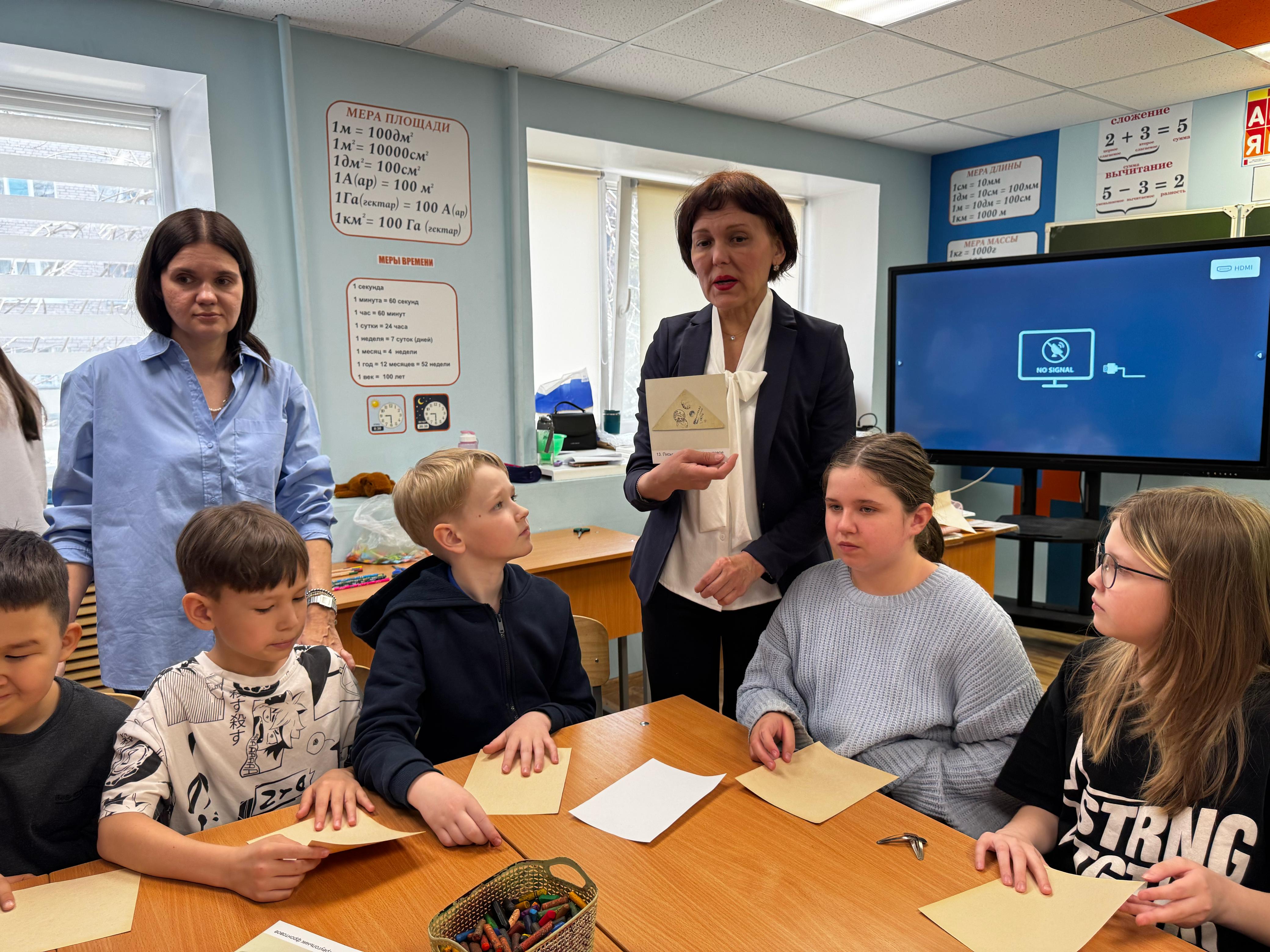 Ребята проявили активность и любознательность. Девочки и мальчики быстро находили пары карточек, с изображением экспонатов Республиканского музей Боевой Славы, научились складывать фронтовые письма-треугольники.