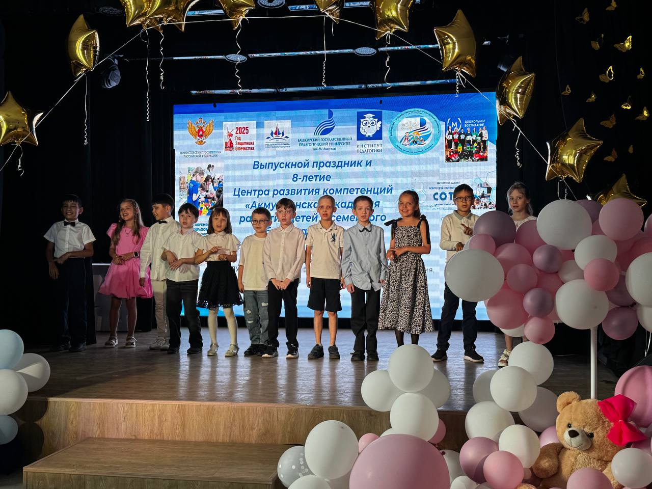 В целях завершения учебного года для 30 школьников, 24 учеников перехода их в следующий класс ЦРК семейного образования, прохождения 14 школьниками летней смены в ЦРК  Сотах Акмуллинского университета и выпуска 18 воспитанников подготовительной к школе группы Центра развития компетенций «Акмуллинская академия развития детей и семейного образования «Соты» кафедры ДПиП ИП, выпускное мероприятие, приуроченное к8-летию со дня основания ЦРК и 80-летию Победы, организации родительского просвещения.