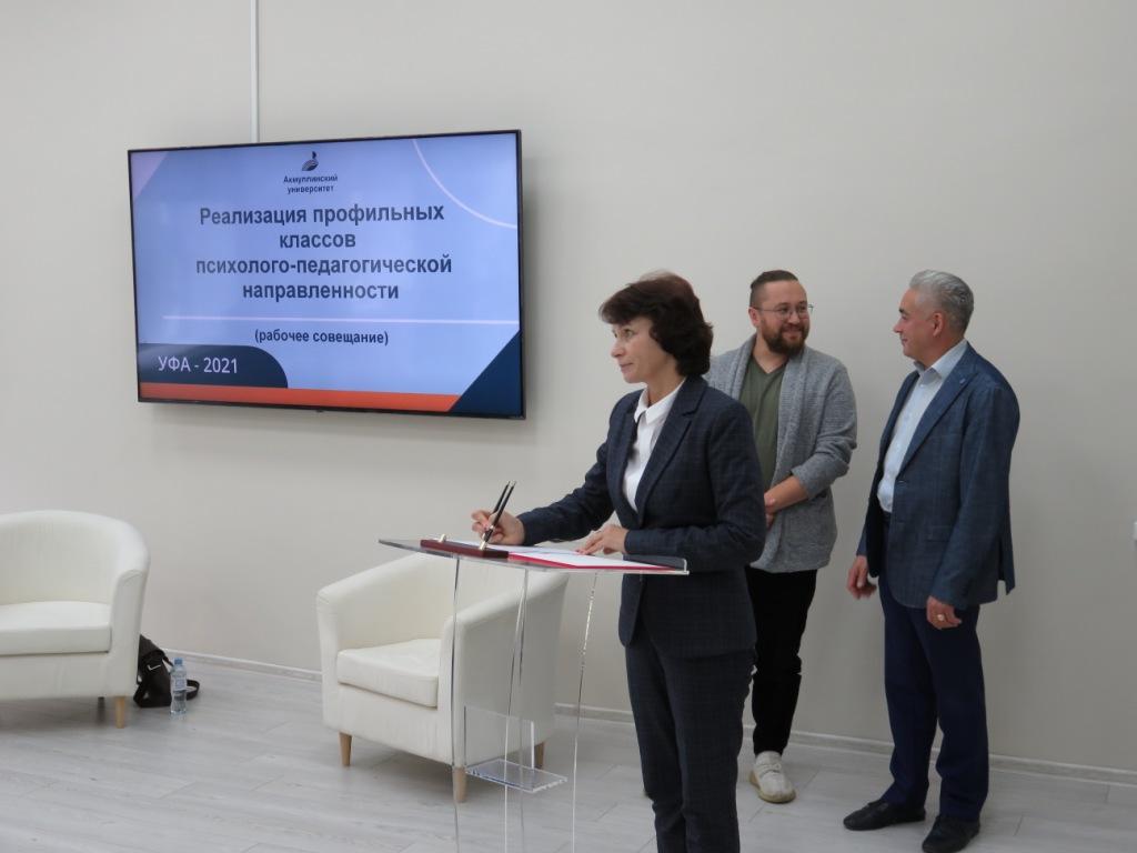 16 сентября в Акмуллинском университете состоялась церемония подписания соглашения о сотрудничестве между университетом, Центром развития талантов «Аврора» и школами, которые примут участие в реализации проекта по открытию профильных классов с психолого-педагогической направленностью. К проекту подключились Башкирская гимназия г. Агидель, СОШ №7 г.Туймазы и СОШ с.Субханкулово Туймазинского района.