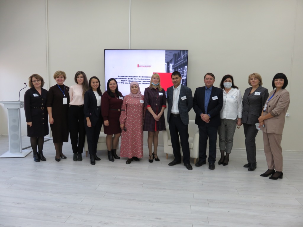 7 октября 2021 года на базе ИНПО «Вектор развития» прошел семинар-совещание  по  вопросам сотрудничества  БГПУ им. М. Акмуллы и МБОУ «Башкирская  гимназия-интернат №2 им. А. Валиди»  г. Ишимбая.