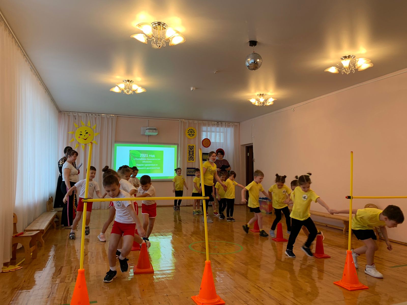 В ходе проекта «Разработка модели единого образовательного пространства организаций дошкольного и общего образования г. Уфы с углубленным изучением башкирского языка», который реализуется при поддержке Фонда содействия гражданскому обществу Республики Башкортостан, педагогический коллектив МАДОУ Детский сад №255 городского округа город Уфа РБ 6 декабря 2021 года организовал музыкально-спортивное развлечение “Ҡуңелле ярыштар” для детей старшего дошкольного возраста. Мероприятие  посвящалось   «Году здоровья и активного долголетия». Команды «Акбузат » и «Юлаевцы»  состязались в силе и ловкости, не уступая  друг другу, а за них переживали товарищи из группы поддержки и жюри: начальник отдела дошкольного образования и кадрового обеспечения Управления образования Администрации городского округа город Уфа Республики Башкортостан Баймухаметова А.Г., главный специалист по дошкольному образованию Управления по гуманитарным и социальным вопросам Администрации Ленинского района ГО г. Уфа РБ Шиянова Л.Л., заместитель директора ИНПО «Вектор развития » БГПУ Минюк Э.Г., доцент кафедры дошкольной педагогики и психологии ФГБОУ ВО БГПУ Шабаева Г.Ф. На мероприятие также были приглашены  заведующий МАДОУ «Башкирский детский  сад №51» ГалиуллинаГ.Я. и воспитатели  детского сада №51.   Педагоги детского сада №255 творчески подошли к организации соревнований: ведущие в национальных костюмах, персонажи башкирских сказок, оформленный красочными орнаментами зал, тематическая презентация,  занимательные конкурсы и состязания  вовлекали в мир спорта и традиций башкирского народа. Все дети из обеих команд были награждены медалями и грамотами.  Затем состоялась  дискуссионная площадка по обмену опытом по художественно – эстетическому развитию детей.  Заведующий детского сада №255 Кальметьева Т.Ю. и старший воспитатель Назарова Л.В.  рассказали о детском садике и его традициях, о педагогическом коллективе, провели экскурсию. Педагоги  башкирского детского сада №51 подарили коллегам часть своего музыкального фонда на башкирском языке.