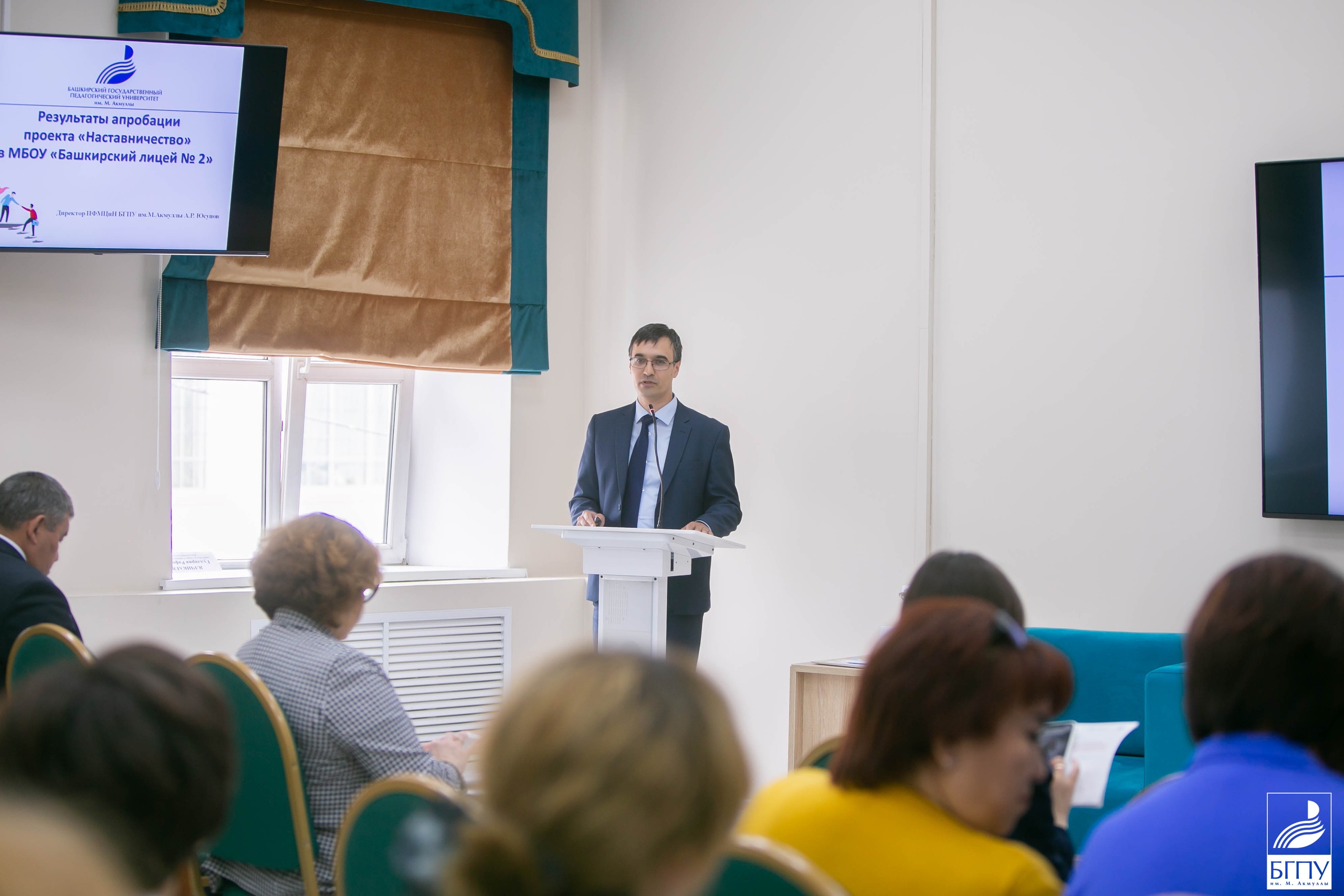 Заведующая «Башкирским детским садом №51» Гузель Галиуллина рассказала о преемственности в системе «Башкирский детский сад №51– Башкирская гимназия №158». Директор Института физики, математики, цифровых и нанотехнологий  Азат Юсупов выступил с докладом об апробировании проекта «Наставничество» в «Башкирском лицее №2».