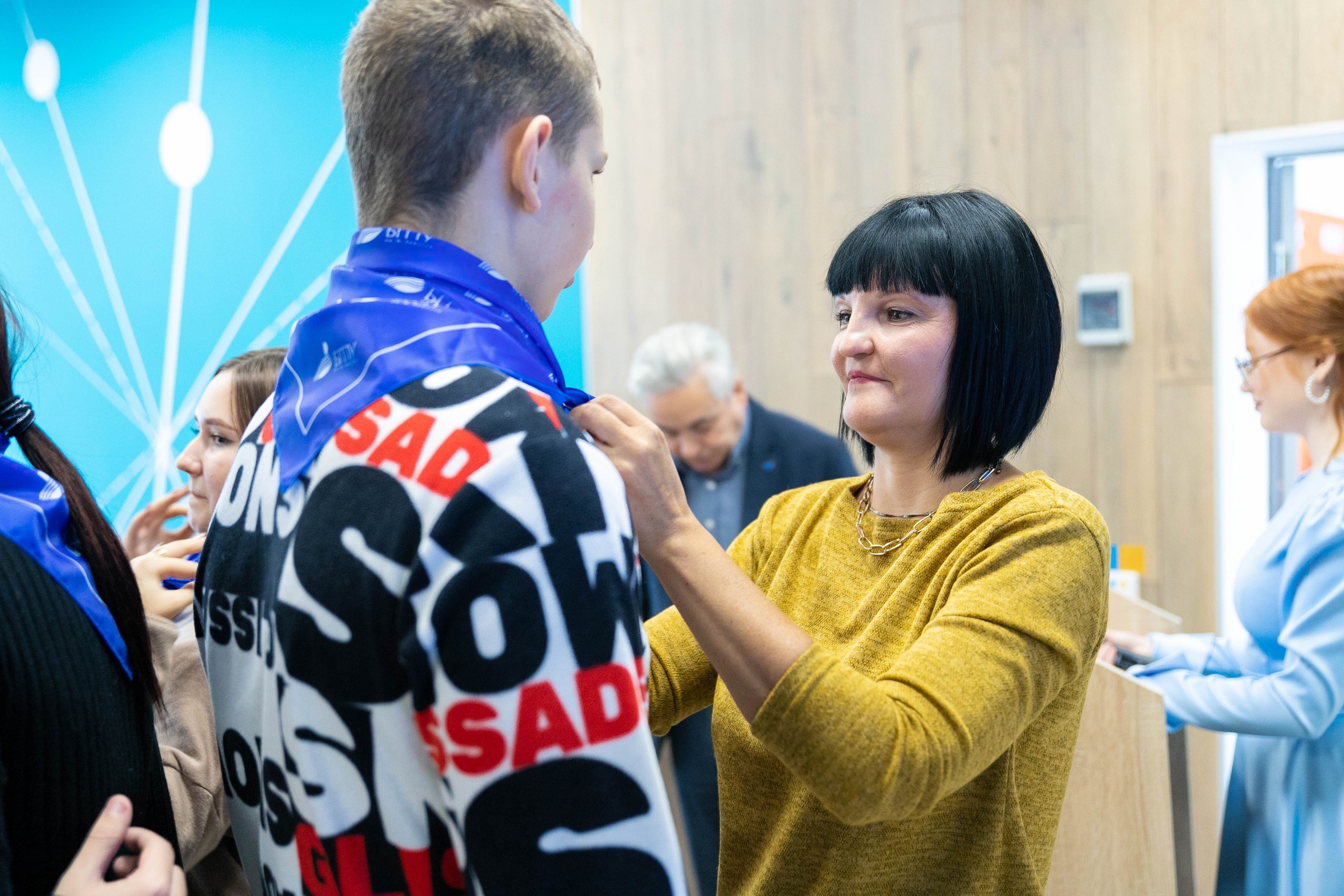 По традиции на церемонии открытия школьникам из ЛНР и ДНР повязали галстуки с символикой БГПУ им. М. Акмуллы.