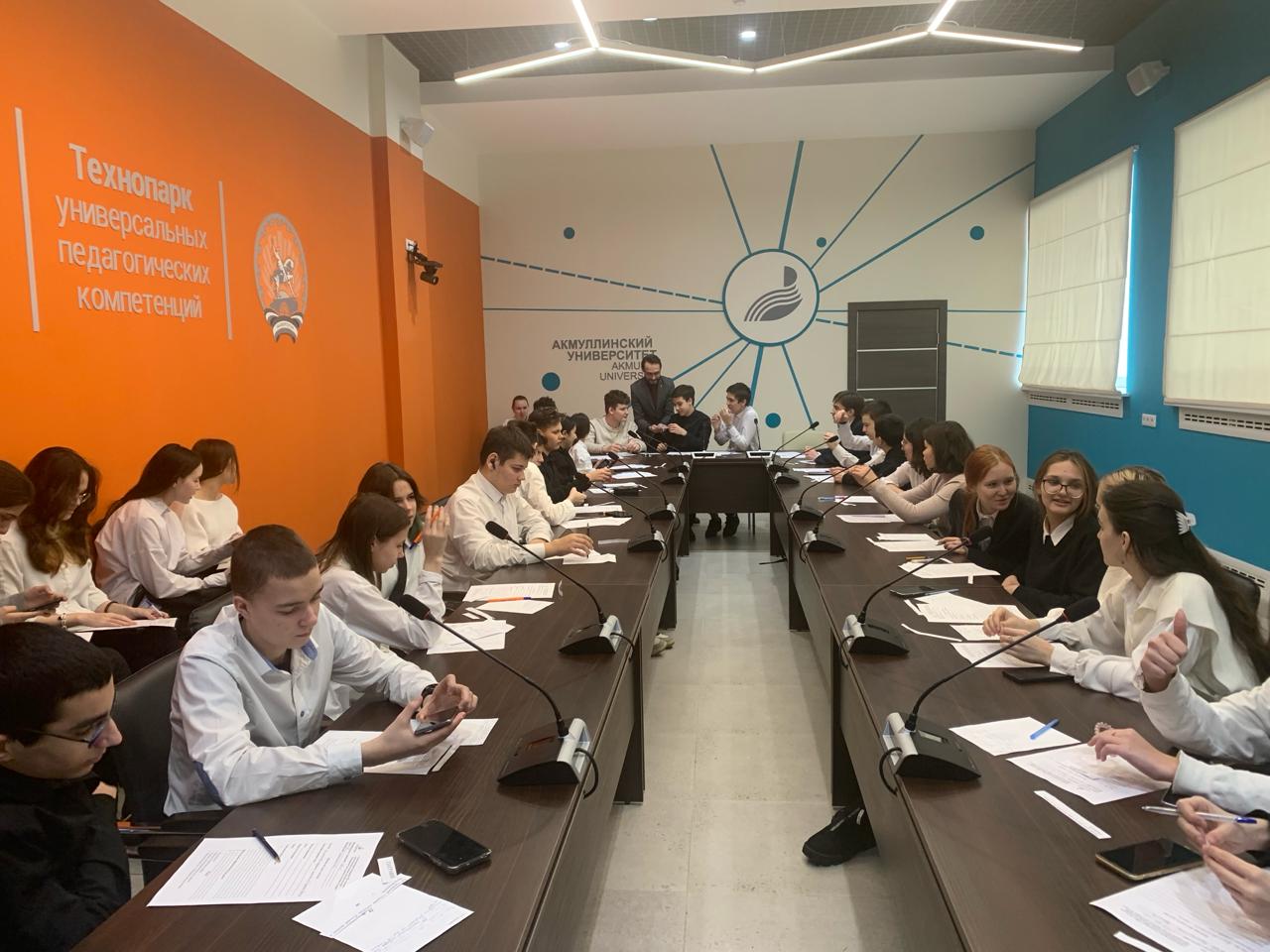 Плановые занятия Детского лектория «Достижения России: прошлое, настоящее, будущее!» состоялись в Технопарке универсальных педагогических компетенций  Акмуллинского университета для  психолого-педагогических  классов  базовых школ:  7 февраля  2024 г. — для учащихся 10 класса школы № 22, 9 февраля — для учащихся 8, 10 классов Центра образования № 10. В начале учебного года базовые школы  сами определили  классы  для реализации практико-ориентированного модуля Профминимума (продвинутый уровень) на базе Технопарка, даты для реализации модуля и время проведения занятий. В течение года по средам реализуется этот совместный проект. На очередном занятии  ребята получили индивидуальные рабочие листы  юного лектора с формулировками  темы, цели и объекта исследования. Далее учащимся было предложено  вспомнить интересные факты по заданной теме и обобщить имеющийся материал.  Ребятам понадобились умение быстро реагировать на задание, оперировать  собранным  материалом, выступать перед аудиторией.  Учащиеся получили и домашнее задание: по предложенному плану подготовить и составить текст лекции-выступления, в котором  необходимо обозначить актуальность темы и отразить выводы по теме.