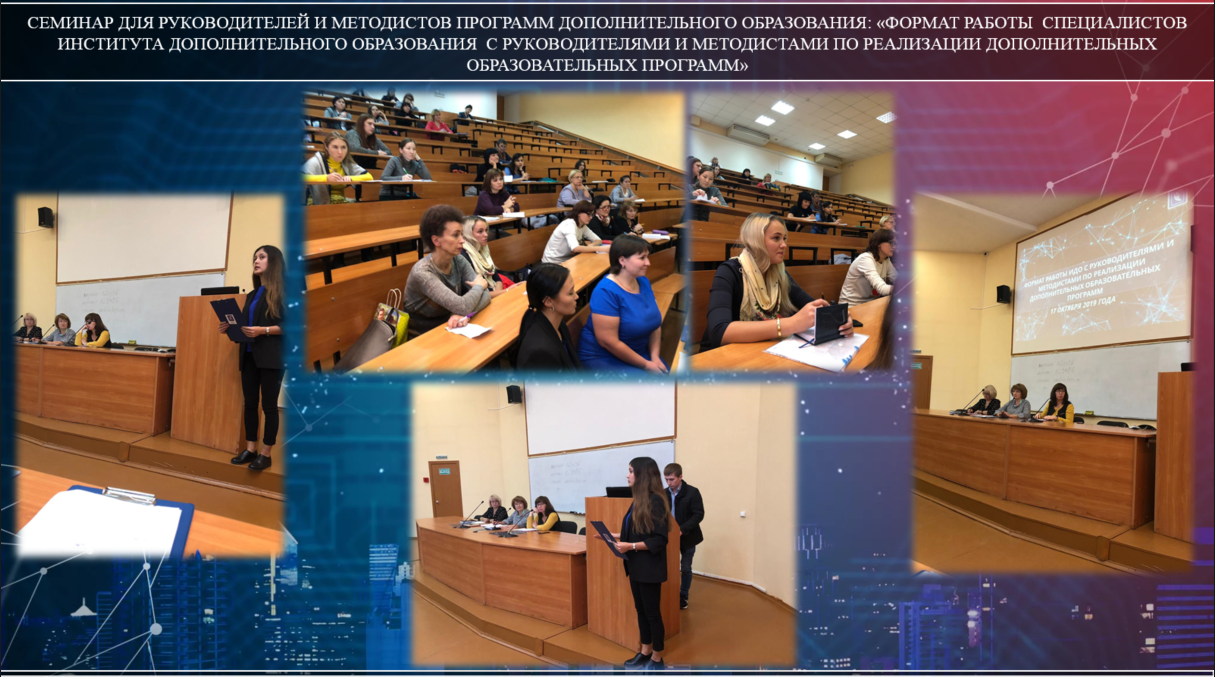 Специалистами по учебно-воспитательной работе Института было презентовано новое содержание электронной платформы системы дополнительного образования, в которой представлены  с видео-инструкцией все направления деятельности  Института, рекомендации и содержание деятельности руководителей и методистов  по реализации программ дополнительного образования, а также ссылки на образцы документов и типичные ошибки, возникающие при оформлении сопутствующих документов.