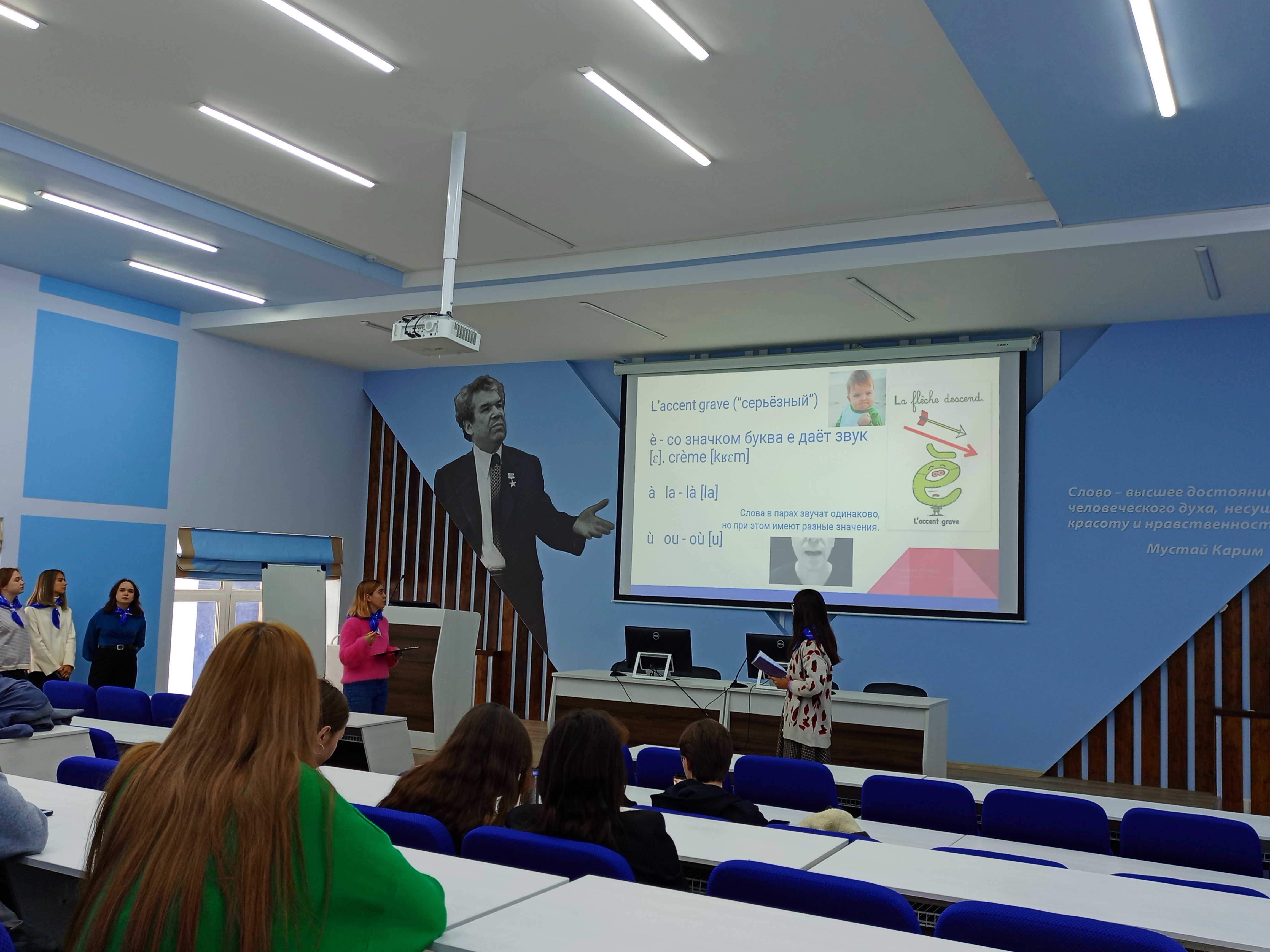 В ходе встречи студенты Анастасия Кобызева и Айгиза Гаянова рассказали первокурсникам о секретах французского языка, о возникновении диакритических знаков и об особенностях правильного произношения. Азалия Ахунова и Карина Ибрагимова провели познавательный квест об основных символах Франции и ее столице городе Париже. Гузель Галина и Элина Халиуллина выстроили эффективное интерактивное взаимодействие с участниками мероприятия, предложив им рекомендации и полезные советы по дальнейшему успешному освоению образовательных программ.