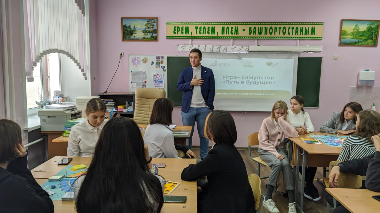 20 февраля 2021 г. в рамках Университетских суббот на базе школы №45 г. Уфы сотрудники управления образовательных разработок Акмуллинского университета провели со школьниками игру «Путь в будущее», разработанную благотворительным фондом Сбербанка «Вклад в будущее».