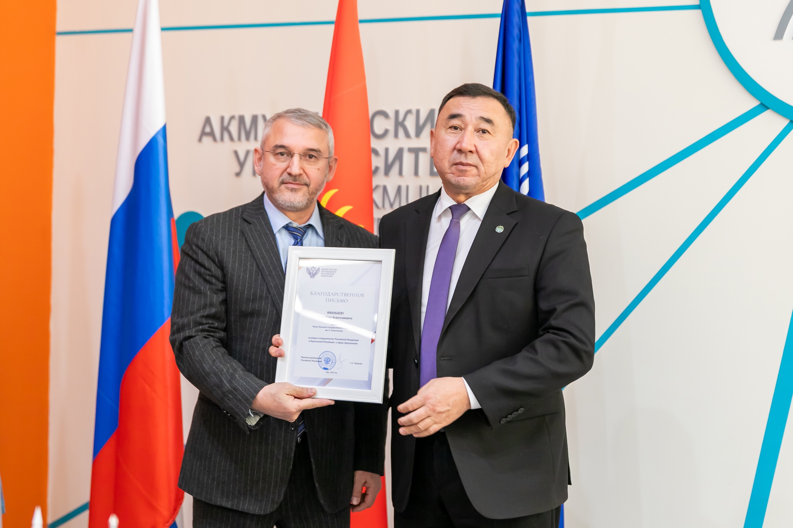 В завершении встречи Усман Рассуханов вручил благодарственные письма Министерства просвещения России за вклад сотрудничество двух стран в сфере образования Аскарбеку Иманбаеву, Бекмурзе Зулуеву и Айдарбеку Гыязову.