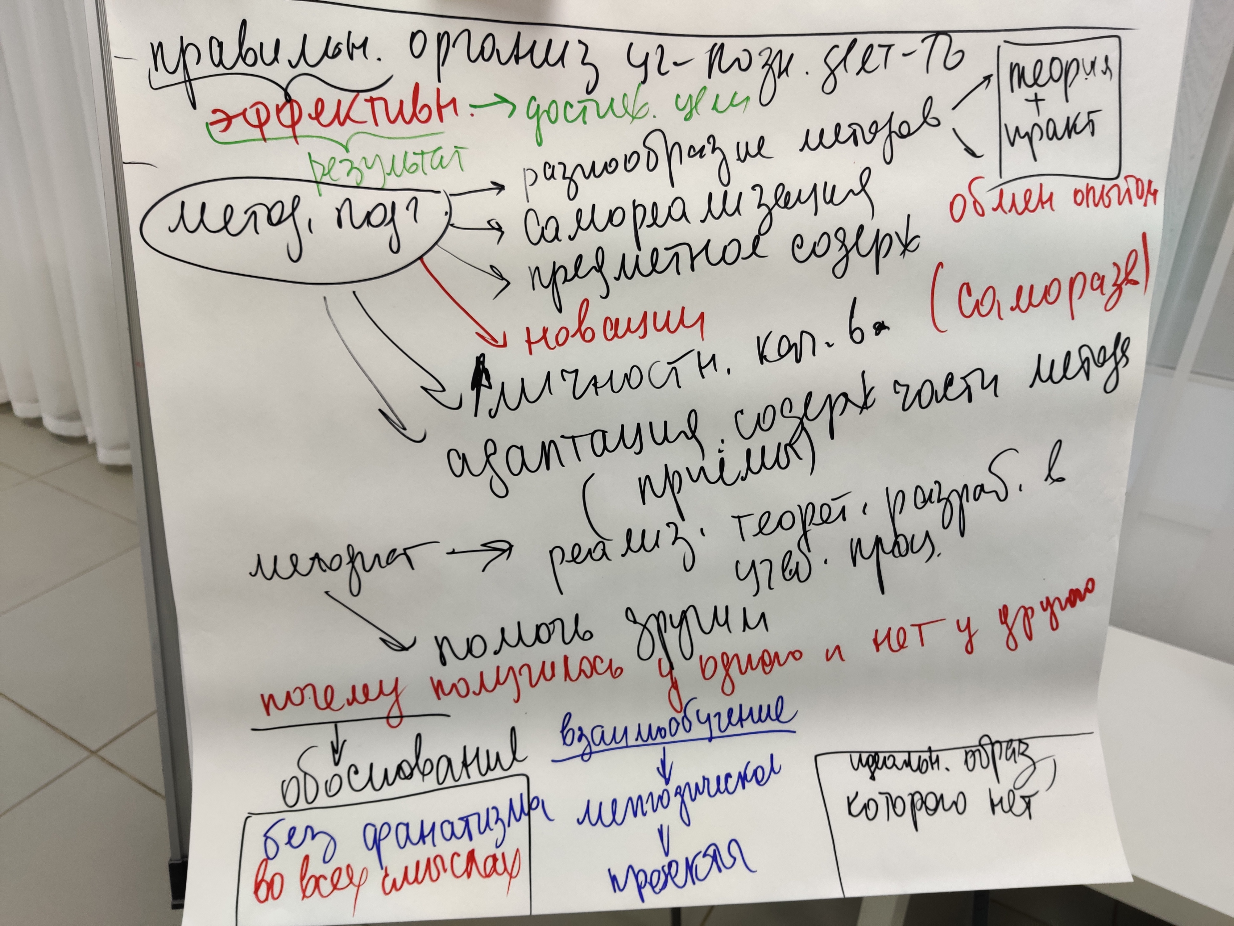 Обучение проходило в интерактивном формате мирового кафе и университетских "точках кипения", такое неформальное общение позволило выработать немало интересных предложений и запросов к университетскому педагогическому сообществу. В числе главных направлений по итогам "точек-кипения" – важность и актуальность углубления предметно-методической и психолого-педагогической компетентности учителя благодаря обучению на магистерских программах. По мнению участников, высока потребность в углубленной подготовке учителей в решении заданий ОГЭ, ЕГЭ и ВОШ; развитии навыков проектирования для решения нестандартных проблем; умении проектирования урока по ФГОС; методическом сопровождении олимпиадной подготовки; обучении интерактивным и игровых технологиям и т.д. Позитивный отклик вызвали идеи о необходимости обучения учителей технологиям тайм–менеджмента и ораторского мастерства; приемам психоэмоциональной саморегуляции и конструктивного разрешения конфликтных ситуаций.