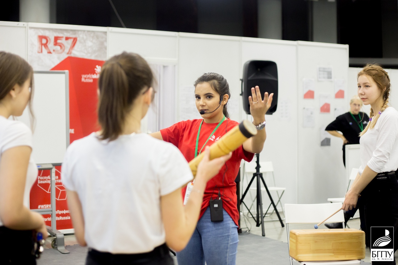 В компетенции «Преподавание музыки в школе» на ВДНХ-Экспо прошли соревнования по модулям «Аранжировка песни» (где конкурсанты создавали аранжировку песни с помощью компьютерной программы и MIDI клавиатуры) и «Ритмическая импровизация» (где было необходимо организовать репетицию и продемонстрировать концертное исполнение ритмической импровизации на детских шумовых инструментах с использованием элементов хореографии).