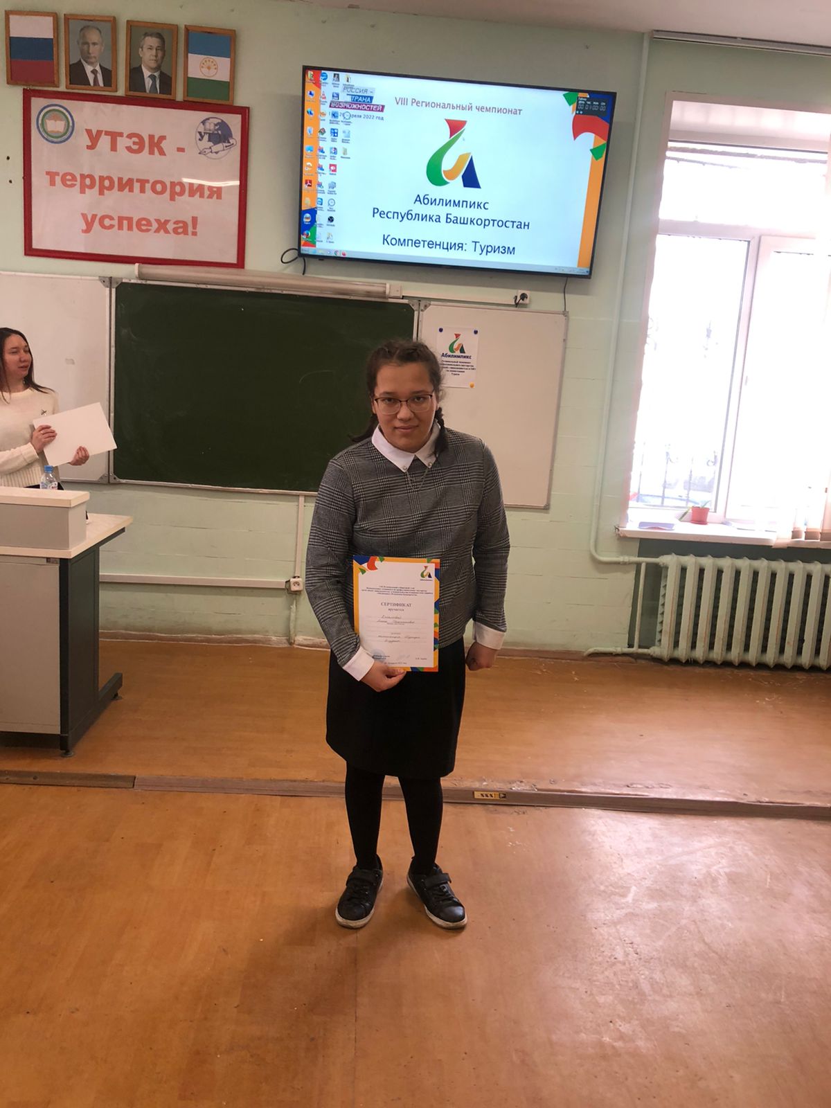 Хазиева Арина Ильфировна 2-е место в компетенции Туризм, эксперт Салихова Гульнара Камиловна