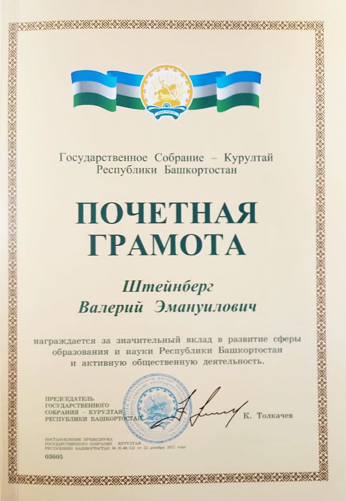 Коллектив НИИ стратегии развития образования  от всей души поздравляет  Валерия Эмануиловича Штейнберга , заведующего научно-исследовательской лабораторией моделирования визуальных регулятивов логико-смыслового типа  с вручением почетной грамоты за особые заслуги, многолетний  труд и профессионализм.