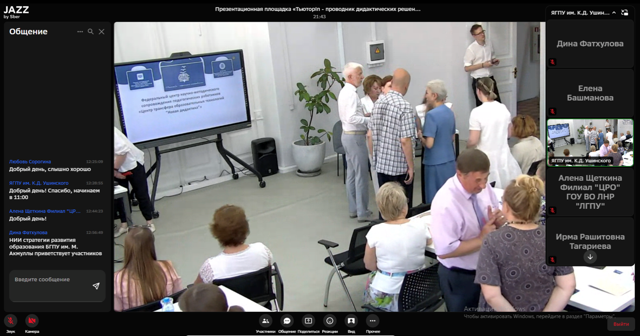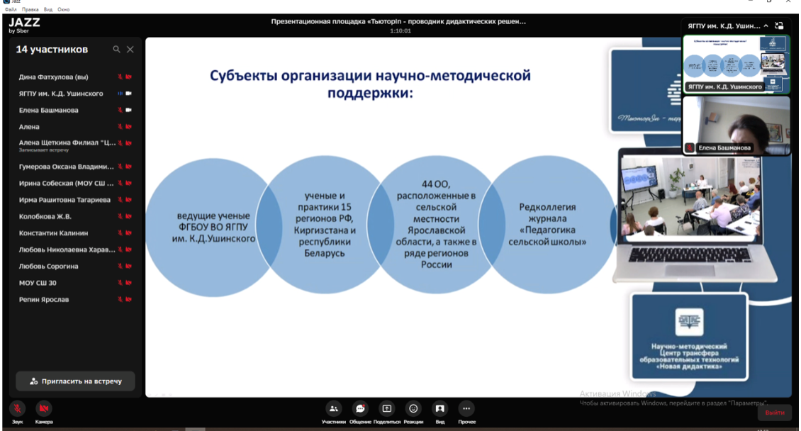 Сотрудники Научно-исследовательского института стратегии развития образования (Тагариева И.Р. и Фатхулова Д.Р.) приняли участие в презентации  Тьюторского центра непрерывного педагогического образования, открытого на базе Федерального центра научно-методического сопровождения педагогических работников "Центр трансфера образовательных технологий "Новая дидактика" ФГБОУ ВО «Ярославский государственный педагогический университет им. К.Д. Ушинского».