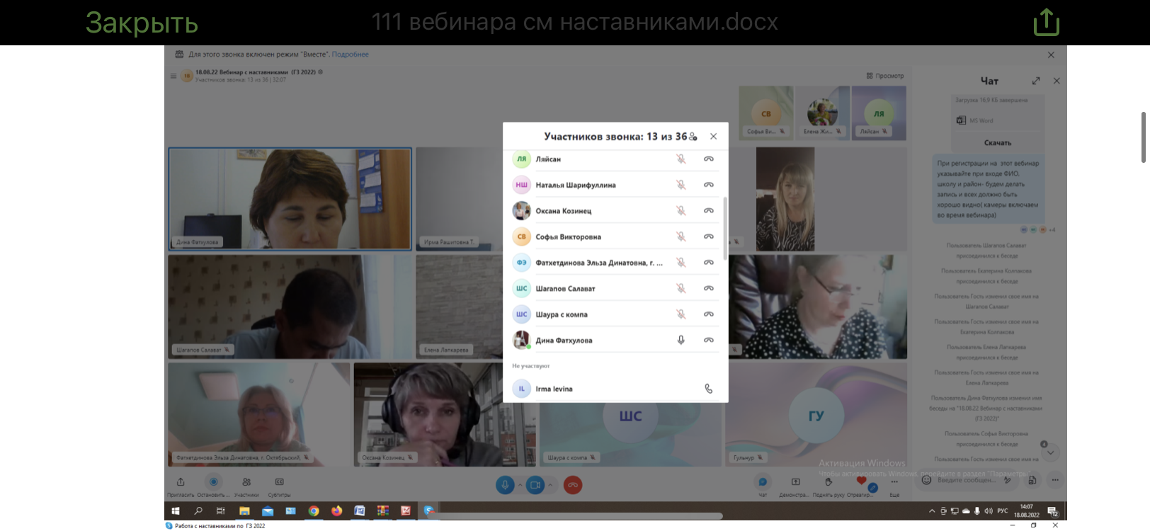 18 августа 2022 состоялся вебинар с наставниками в рамках Государственного задания Министерства просвещения РФ №073-03-2022-009/3 от 11 апреля 2022 г. на выполнение научно-исследовательских работ по теме «Исследование и разработка методических рекомендаций по применению современных цифровых и интернет технологий на примере сельских и малокомплектных школ в части обеспечения качественного образовательного процесса».