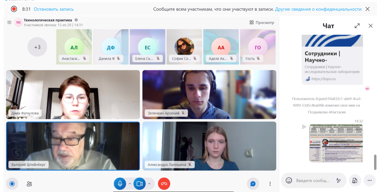 На вебинаре  выступила старший научный сотрудник лаборатории Д.Р. Фатхулова и рассказала студентам о  лаборатории, технологии моделирования визуальных дидактических регулятивов и их применении в образовании.