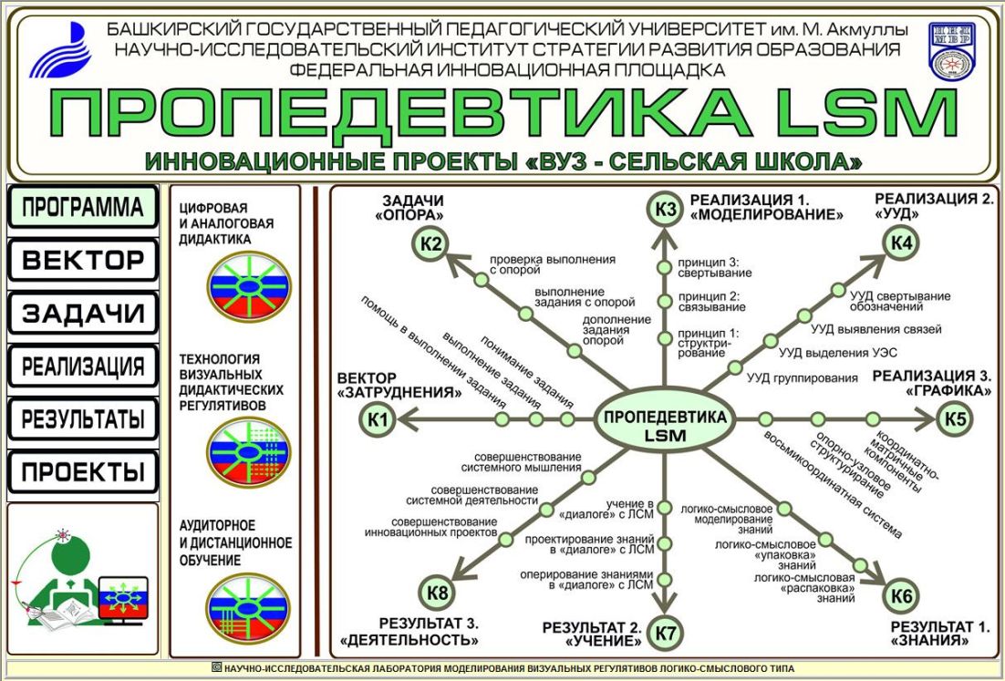 Завершена поисковая разработка - Обучающая программа "Пропедевтика ЛСМ", предназначенная для реализации совместных инновационных проектов со школами республики на основе технологии логико-смыслового моделирования. Планируется защита Свидетельством на РИД.