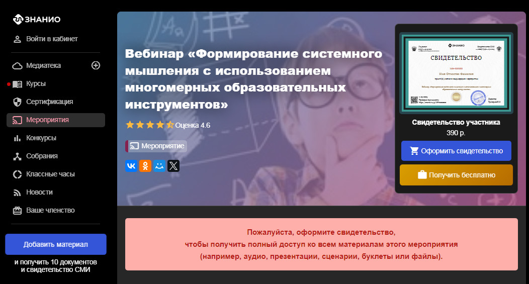 Вебинар «Формирование системного мышления с использованием многомерных образовательных инструментов». httpsznanio.rumedianar728