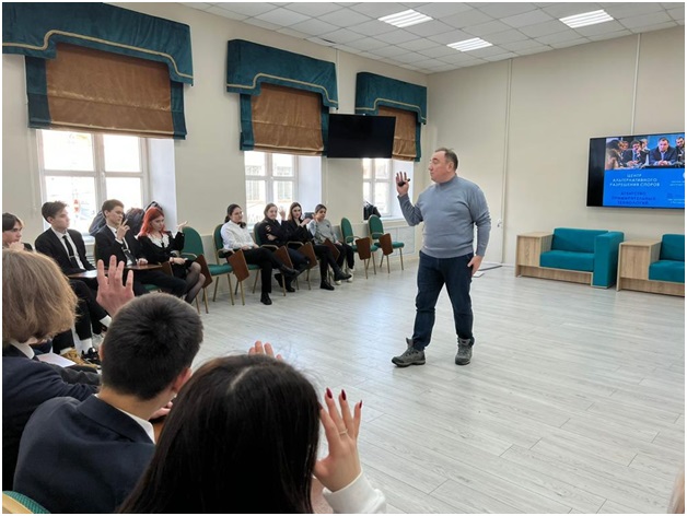 Начальник Центра примирительных технологий и общественного взаимодействия Акмуллинского университета Максим Беляев рассказал ребятам об основах школьной медиации, обучил основным технологиям гигиены конфликта, провёл тренинг.