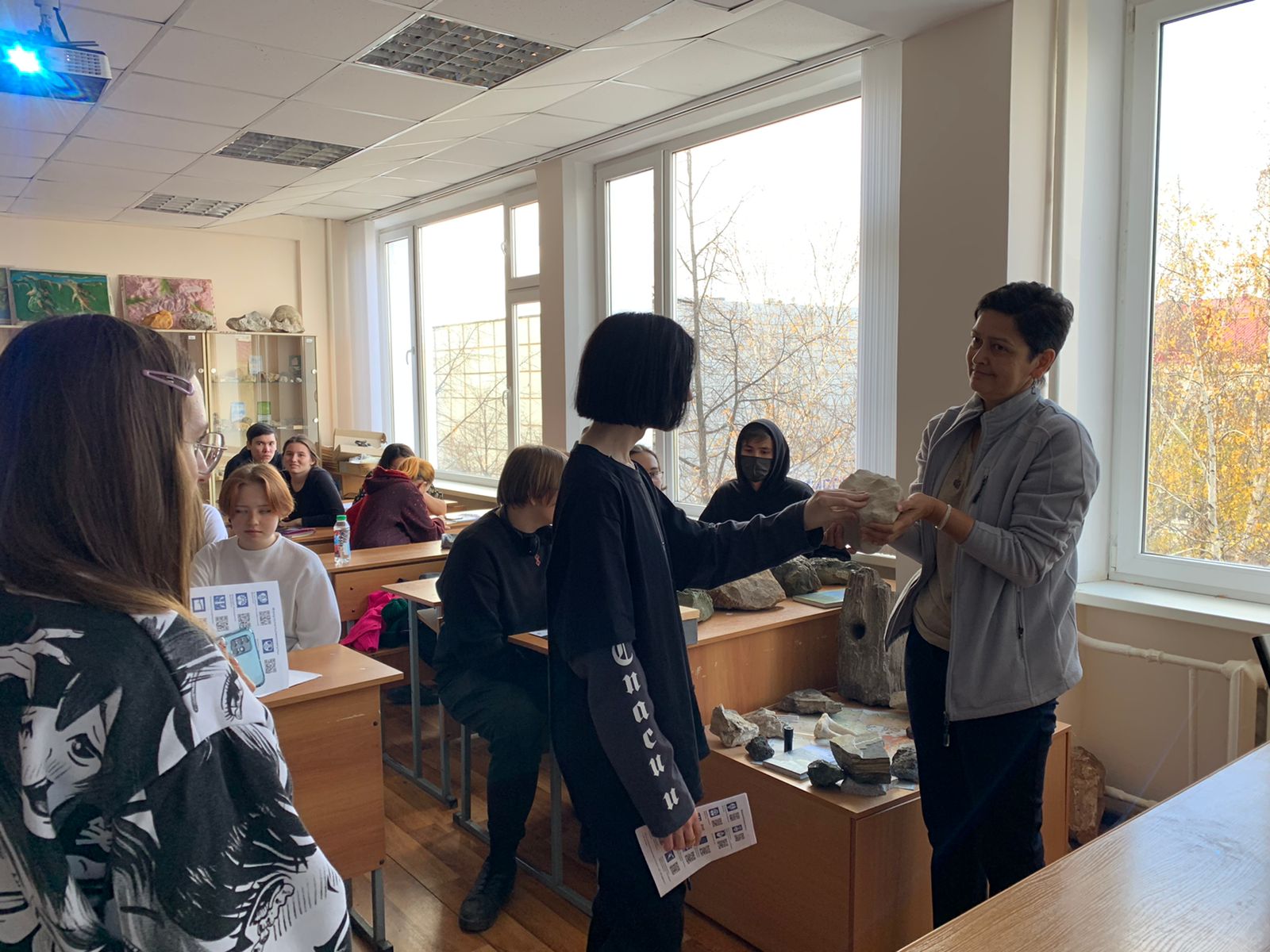 Заведующая кафедрой экологии, географии и природопользования естественно-географического факультета Галия Гильманова показала учебные аудитории факультета и научно-исследовательские лаборатории, геологический кабинет-музей, кабинет самостоятельной работы студентов.