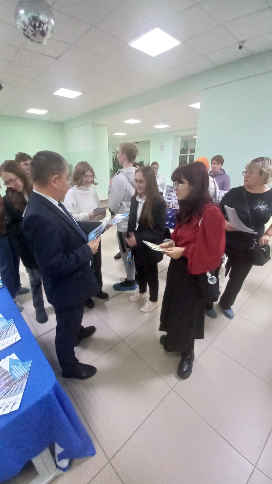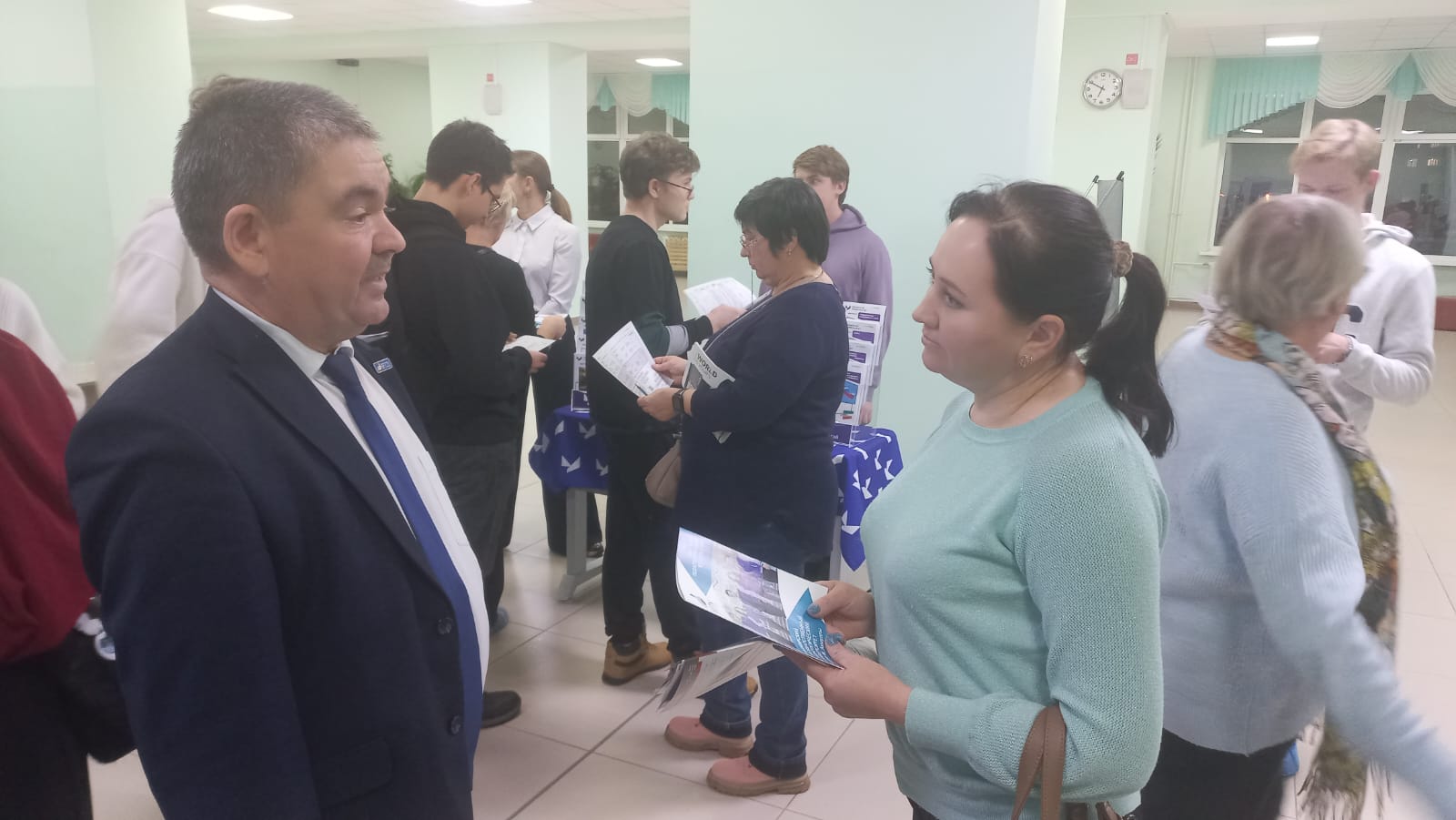 В фойе лицея для школьников была приготовлена выставка с презентационными материалами об учебных заведениях, где учащиеся и родители могли пообщаться с представителями вузов.
