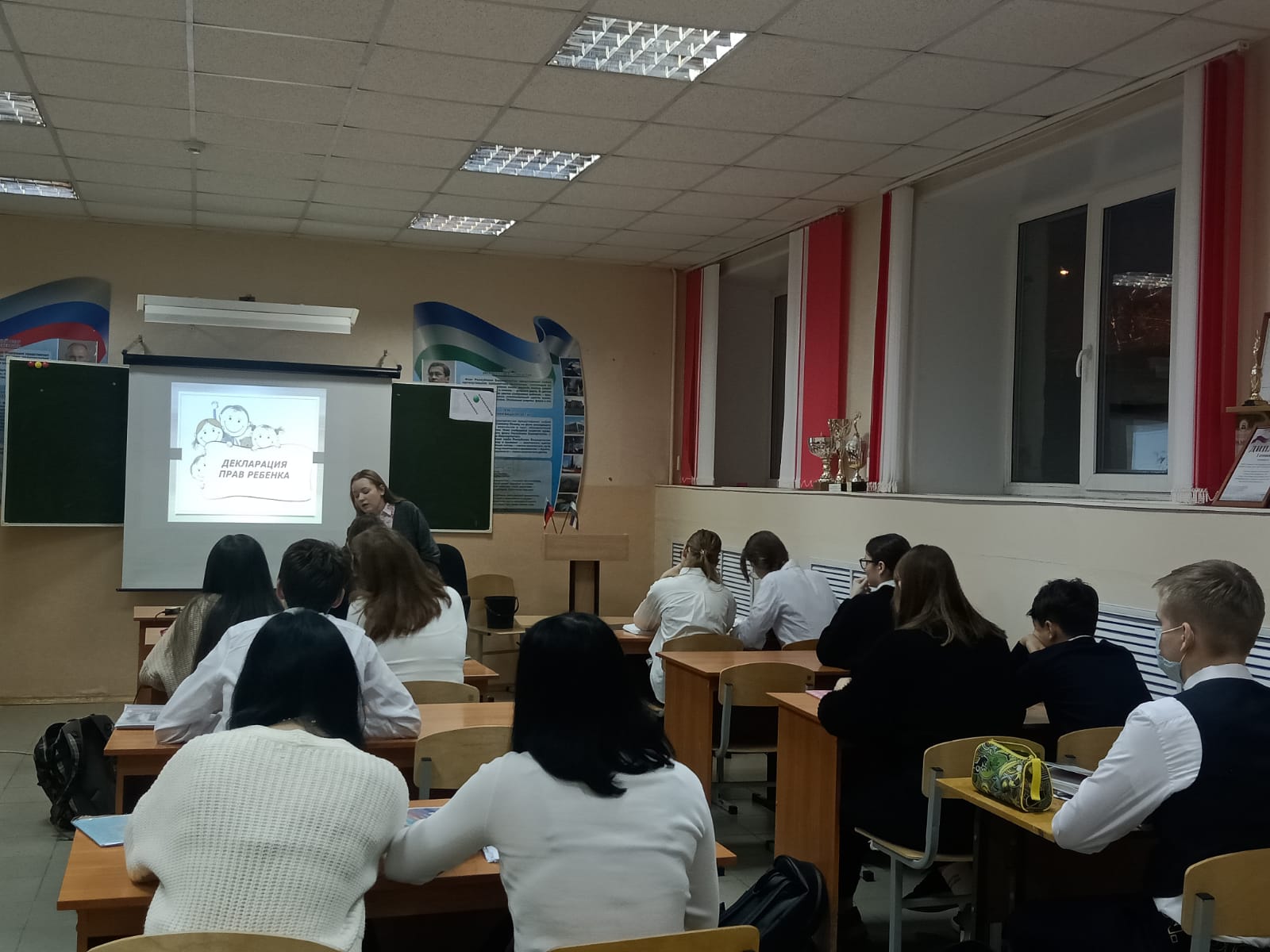 Для справки. 20 ноября 1959 года Генеральной Ассамблей ООН была принята первая Декларация прав ребенка, которая провозглашала равные права детей в области образования, воспитания, духовного и физического развития, социального обеспечения независимо от национальности, цвета кожи, имущественного положения, общественного происхождения и т.п. Кафедра обществознания, права и социального управления ИИПСГО участвует в проведении правовых уроков на протяжении семи лет. За это время разработаны методические рекомендации по проведению уроков по изучению прав ребенка.