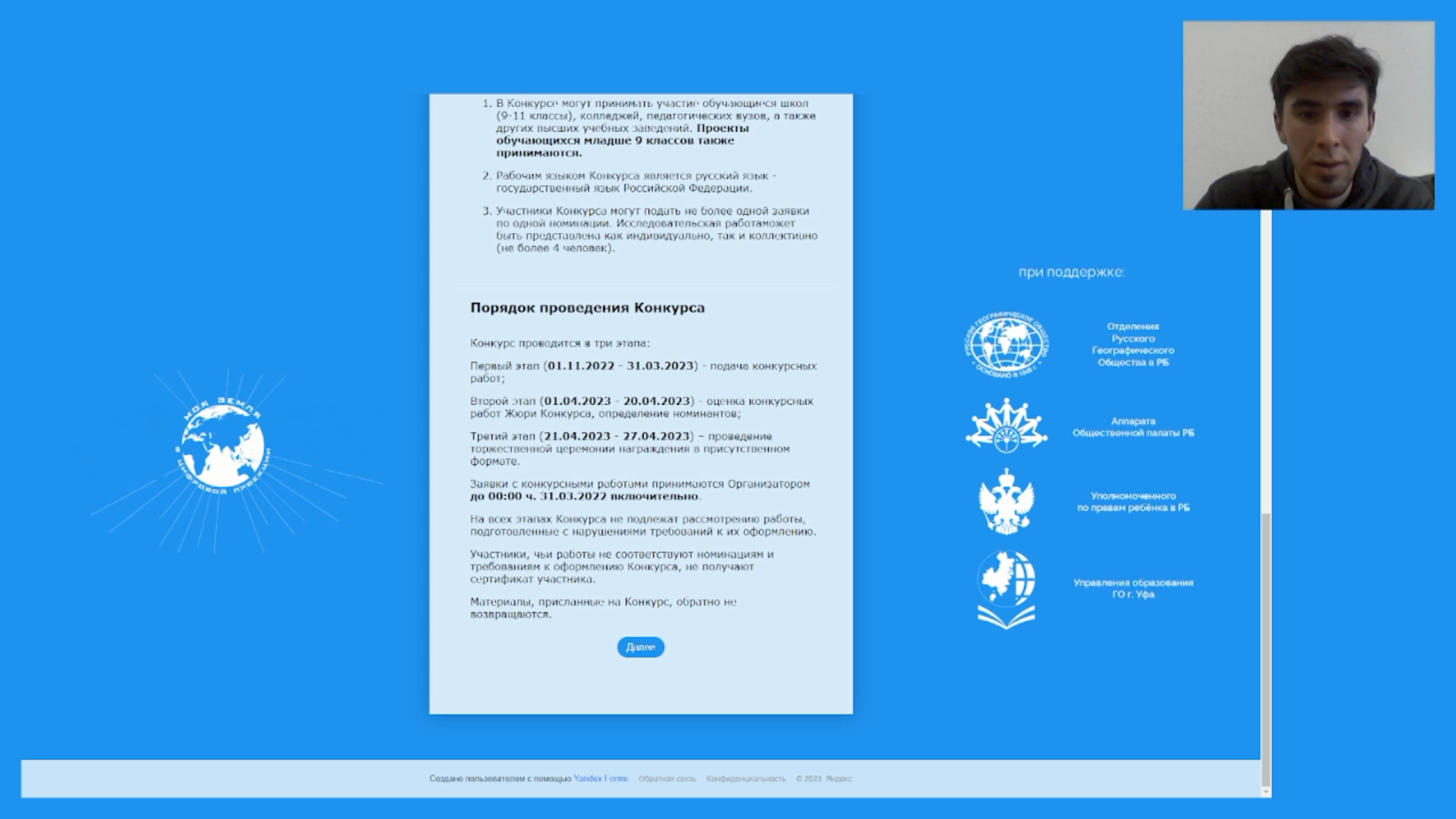 В рамках проекта 8 февраля 2023 года на базе Института исторического, правового и социально-гуманитарного образования БГПУ им М.Акмуллы  состоялся методический онлайн-семинар по подготовке научно-исследовательских проектов на III Всероссийский конкурс исследовательских работ «Моя Земля в цифровой проекции».