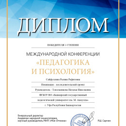 Это достижение стало возможным благодаря высокому уровню исследовательской компетенции и глубокой проработанности представленного материала. Диплом победителя является свидетельством высокого уровня профессиональной подготовки студентов нашего учебного заведения и подтверждает правильность выбранной образовательной стратегии. Поздравляем Ралину Рафитовну с такой победой!