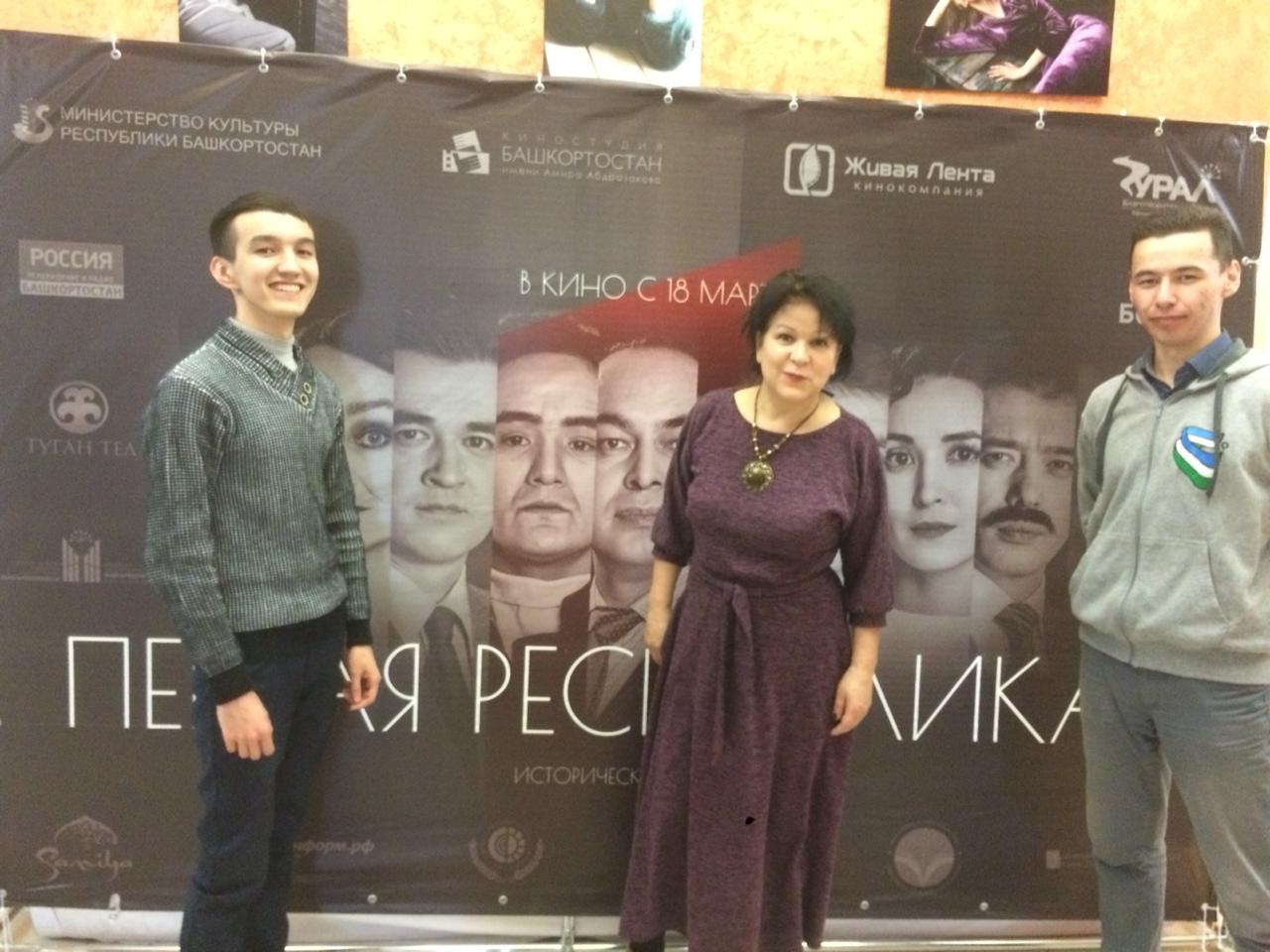 01 апреля 2019 г. группа студентов Башкирской филологии с доцентом кафедры философии, социологии и политологии Лукьяновой Р. А. посетили кинотеатр Родина и посмотрели премьерный показ фильма "Первая Республика" посвященный 100-летию Башкортостана