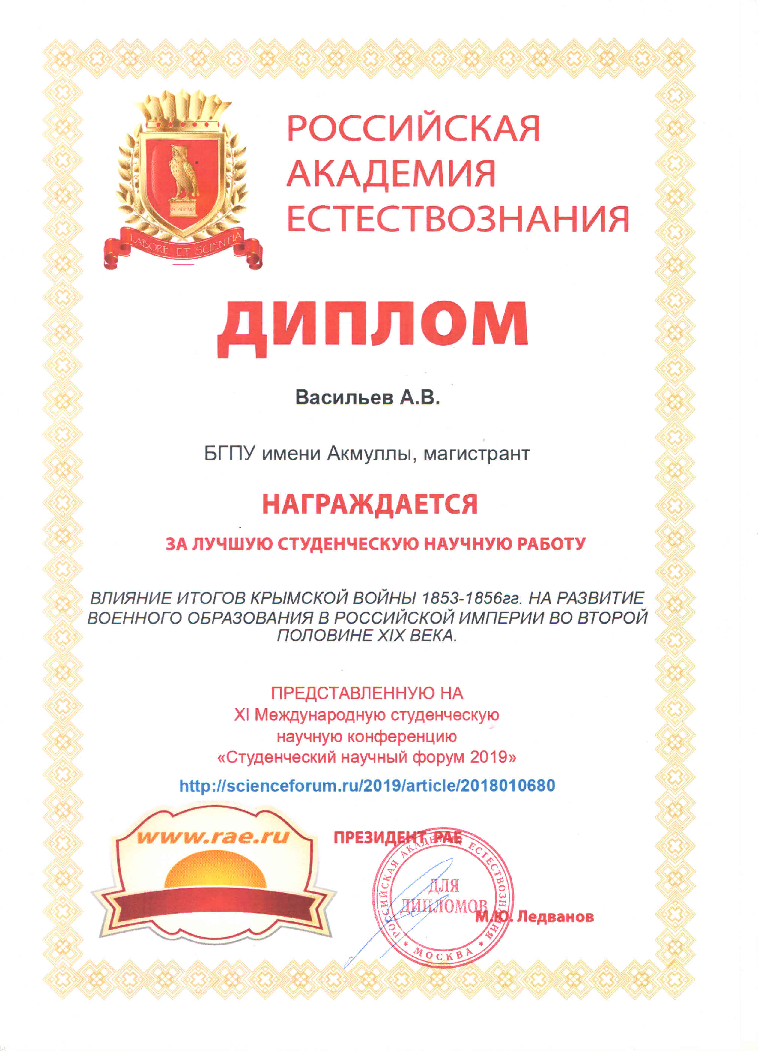 5. Васильев А.В., ИИПО «Влияние итогов Крымской войны 1853-1856 на развитие военного образования в Российской империи во второй половине XIX века”